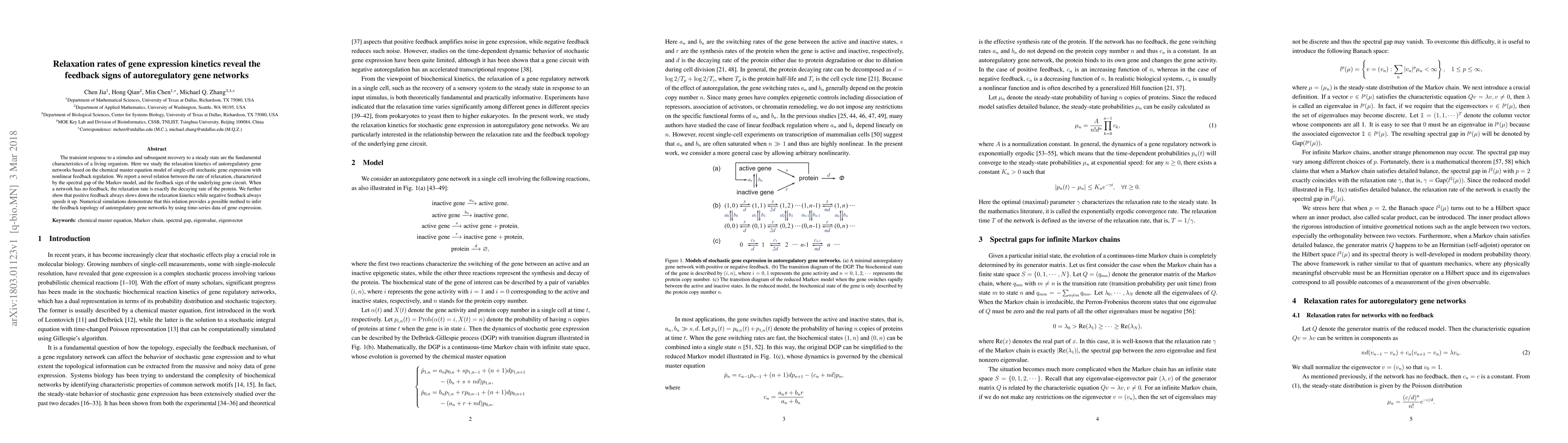 This paper investigates the relaxation kinetics of autoregulatory gene networks, revealing a novel relationship between the relaxation rate and the feedback sign in gene circuits. It demonstrates that positive feedback slows down relaxation while negative feedback accelerates it, providing a method to infer network topology from gene expression time-series data.