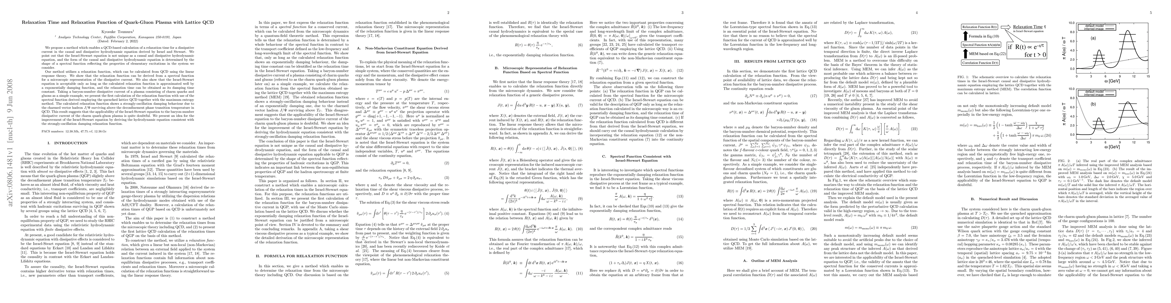 We propose a method which enables a QCD-based calculation of a relaxation time for a dissipative current in the causal and dissipative hydrodynamic equation derived by Israel and Stewart. We point out that the Israel-Stewart equation is not unique as a causal and dissipative hydrodynamic equation, and the form of the causal and dissipative hydrodynamic equation is determined by the shape of a spectral function reflecting the properties of elementary excitations in the system we consider. Our method utilizes a relaxation function, which can be calculated from QCD using the linear response theory. We show that the relaxation function can be derived from a spectral function for a microscopic representation of the dissipative current. We also show that the Israel-Stewart equation is acceptable only as long as the calculated relaxation function is approximated well by a exponentially damping function, and the relaxation time can be obtained as its damping time constant. Taking a baryon-number dissipative current of a plasma consisting of charm quarks and gluons as a simple example, we present the first calculation of the relaxation function with use of the spectral function derived employing the quenched lattice QCD together with the maximum entropy method. The calculated relaxation function shows a strongly-oscillation damping behaviour due to the charmed vector hadron $J/\Psi$ surviving above the deconfinement phase transition temperature in QCD. This result suggests that the applicability of the Israel-Stewart equation to the baryon-number dissipative current of the charm quark-gluon plasma is quite doubtful. We present an idea for the improvement of the Israel-Stewart equation by deriving the hydrodynamic equation consistent with the strongly-oscillation damping relaxation function.