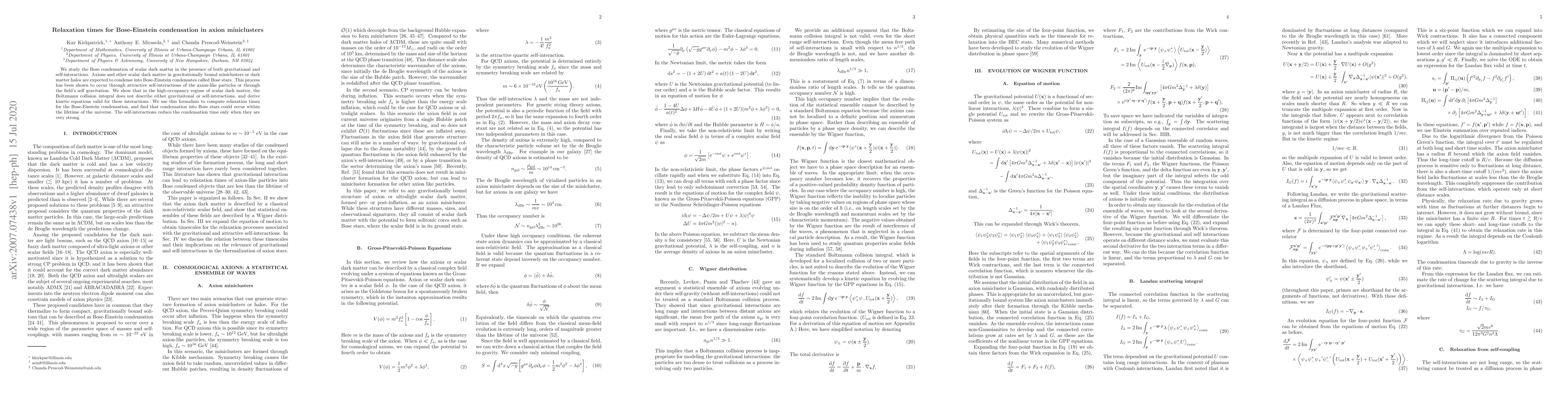 This paper investigates the Bose-Einstein condensation of scalar dark matter, specifically axions, in gravitationally bound miniclusters, deriving kinetic equations for both gravitational and self-interactions. It finds that relaxation times for condensation into Bose stars may be within the universe's lifetime, with significant self-interactions only drastically reducing condensation time when very strong.