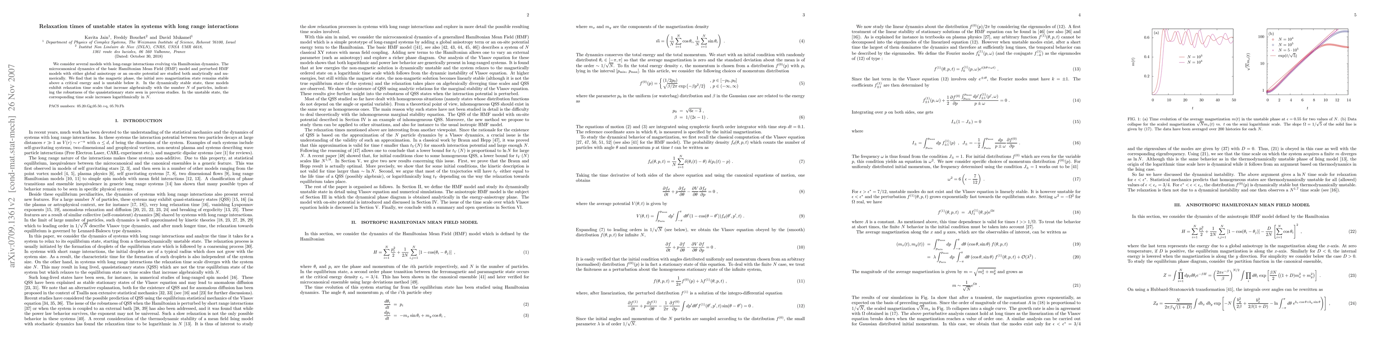 We consider several models with long-range interactions evolving via Hamiltonian dynamics. The microcanonical dynamics of the basic Hamiltonian Mean Field (HMF) model and perturbed HMF models with either global anisotropy or an on-site potential are studied both analytically and numerically. We find that in the magnetic phase, the initial zero magnetization state remains stable above a critical energy and is unstable below it. In the dynamically stable state, these models exhibit relaxation time scales that increase algebraically with the number $N$ of particles, indicating the robustness of the quasistationary state seen in previous studies. In the unstable state, the corresponding time scale increases logarithmically in $N$.