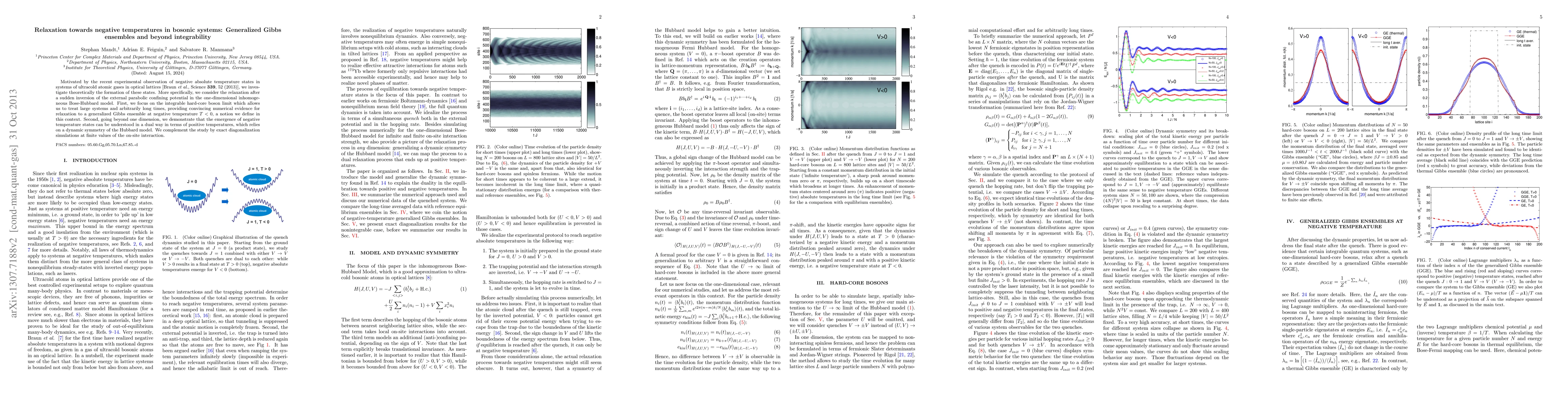 This paper investigates the theoretical formation of negative temperature states in ultracold bosonic systems, particularly focusing on the relaxation dynamics in the one-dimensional inhomogeneous Bose-Hubbard model after a potential inversion. It provides evidence for relaxation to a generalized Gibbs ensemble at negative temperatures and explores the dual interpretation of these states in terms of positive temperatures.