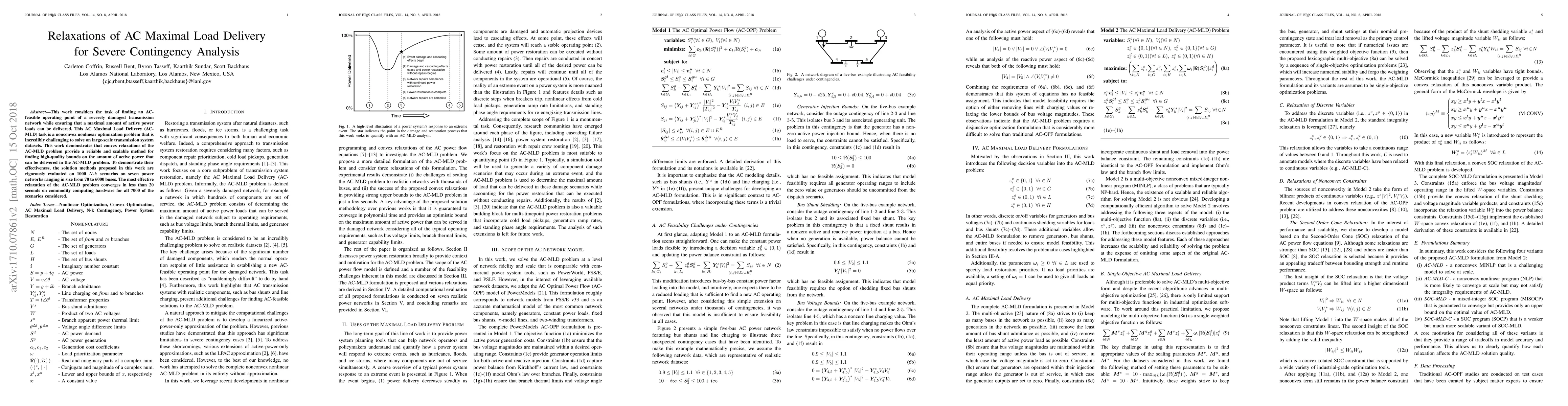 This work considers the task of finding an AC-feasible operating point of a severely damaged transmission network while ensuring that a maximal amount of active power loads can be delivered. This AC Maximal Load Delivery (AC-MLD) task is a nonconvex nonlinear optimization problem that is incredibly challenging to solve on large-scale transmission system datasets. This work demonstrates that convex relaxations of the AC-MLD problem provide a reliable and scalable method for finding high-quality bounds on the amount of active power that can be delivered in the AC-MLD problem. To demonstrate their effectiveness, the solution methods proposed in this work are rigorously evaluated on 1000 N-k scenarios on seven power networks ranging in size from 70 to 6000 buses. The most effective relaxation of the AC-MLD problem converges in less than 20 seconds on commodity computing hardware for all 7000 of the scenarios considered.