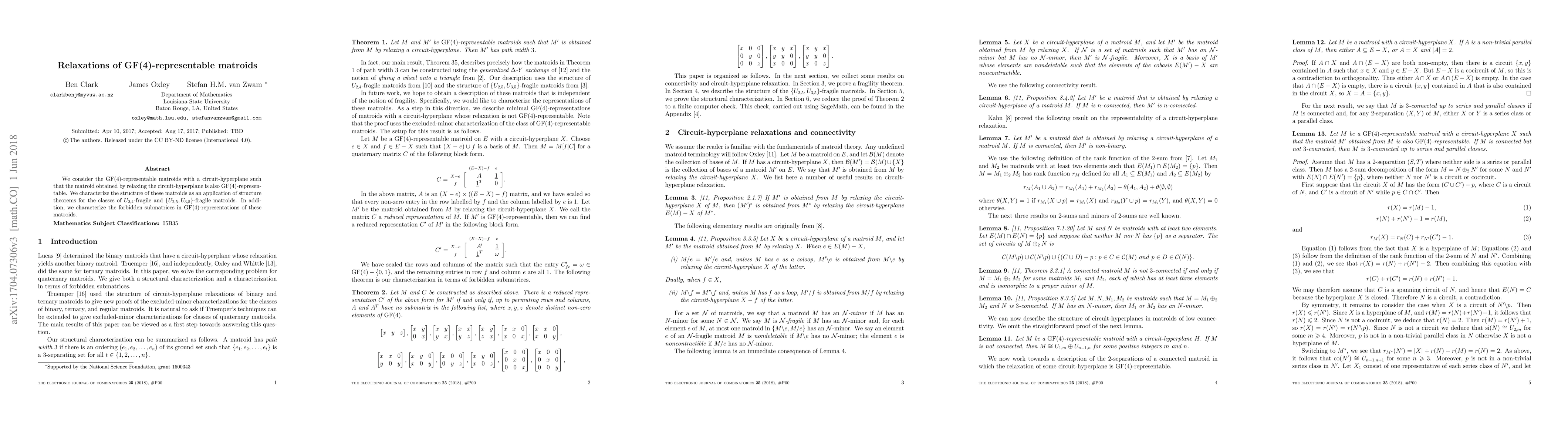 We consider the GF$(4)$-representable matroids with a circuit-hyperplane such that the matroid obtained by relaxing the circuit-hyperplane is also GF$(4)$-representable. We characterize the structure of these matroids as an application of structure theorems for the classes of $U_{2,4}$-fragile and $\{U_{2,5},U_{3,5}\}$-fragile matroids. In addition, we characterize the forbidden submatrices in GF$(4)$-representations of these matroids.