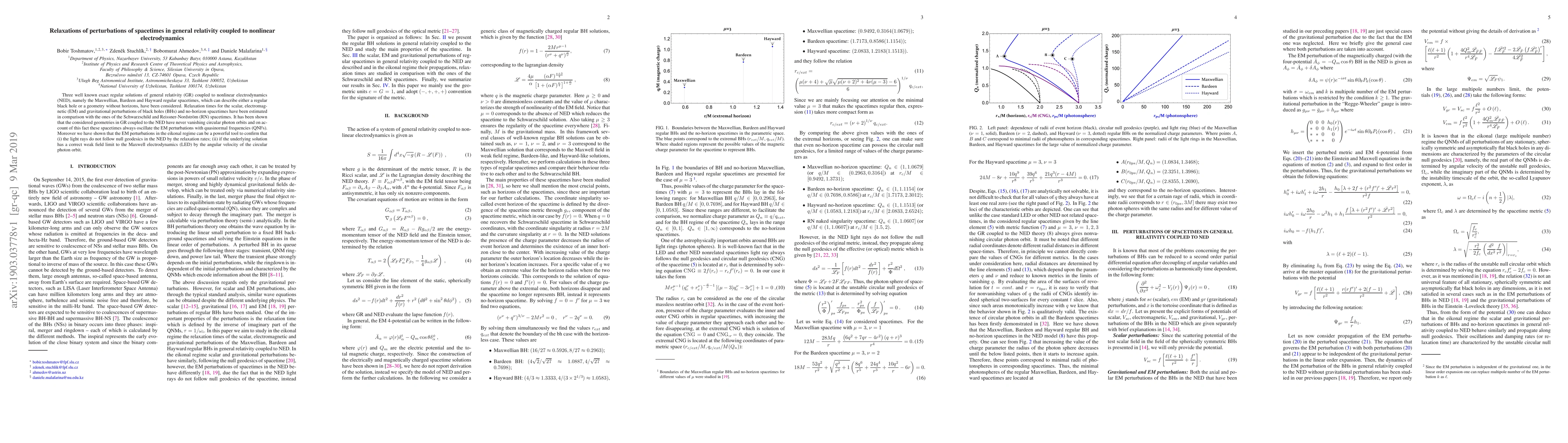 This paper investigates the relaxation times for scalar, electromagnetic, and gravitational perturbations in regular solutions of general relativity coupled to nonlinear electrodynamics, comparing them to Schwarzschild and Reissner-Nordström spacetimes. It finds that these regular geometries exhibit non-vanishing circular photon orbits, leading to oscillations in electromagnetic perturbations with quasinormal frequencies.