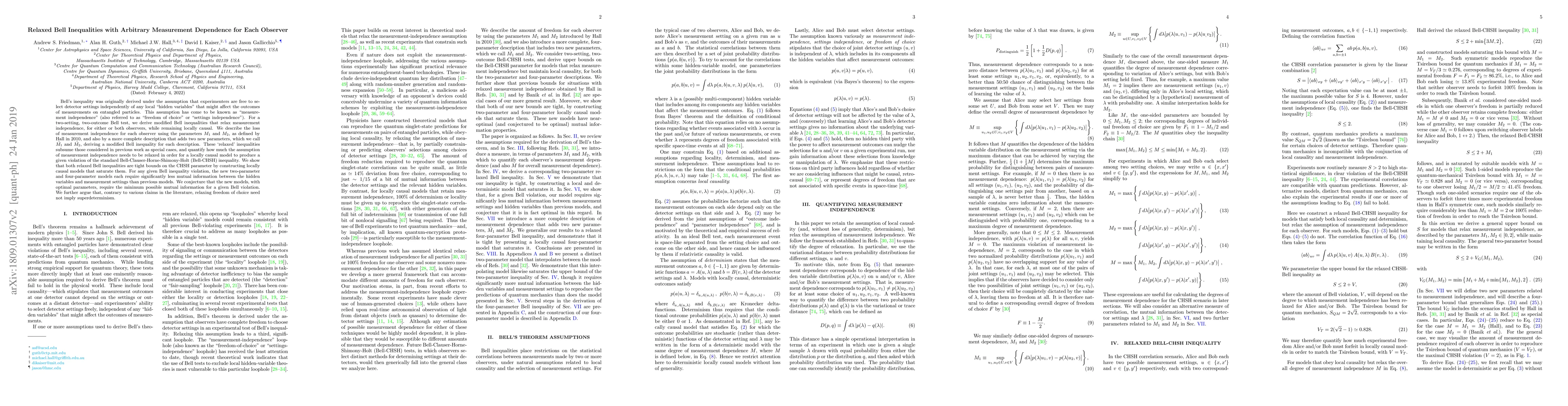 This paper derives modified Bell inequalities that relax the assumption of measurement independence for each observer in a two-setting, two-outcome Bell test, while maintaining local causality. The new inequalities quantify the necessary relaxation of measurement independence to achieve a given violation of the standard Bell-CHSH inequality, and suggest that less mutual information is required compared to previous models.