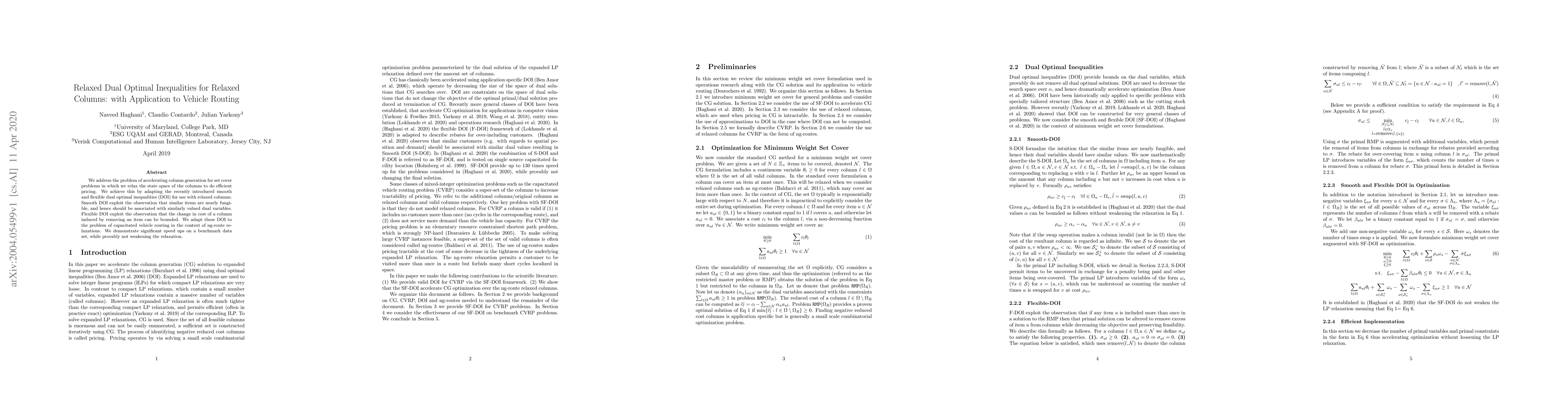 We address the problem of accelerating column generation for set cover problems in which we relax the state space of the columns to do efficient pricing. We achieve this by adapting the recently introduced smooth and flexible dual optimal inequalities (DOI) for use with relaxed columns. Smooth DOI exploit the observation that similar items are nearly fungible, and hence should be associated with similarly valued dual variables. Flexible DOI exploit the observation that the change in cost of a column induced by removing an item can be bounded. We adapt these DOI to the problem of capacitated vehicle routing in the context of ng-route relaxations. We demonstrate significant speed ups on a benchmark data set, while provably not weakening the relaxation.