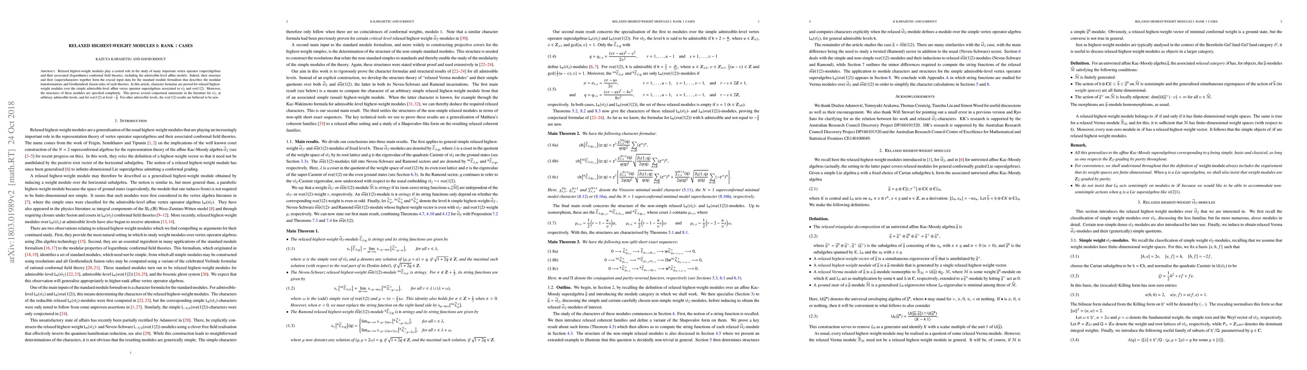 This paper proves character formulae and completely specifies the structures of relaxed highest-weight modules for simple affine vertex operator superalgebras associated with $\mathfrak{sl}_2$ and $\mathfrak{osp}(1|2)$, confirming several conjectures for $\mathfrak{sl}_2$ and presenting new results for $\mathfrak{osp}(1|2)$ at level $-\frac{5}{4}$.