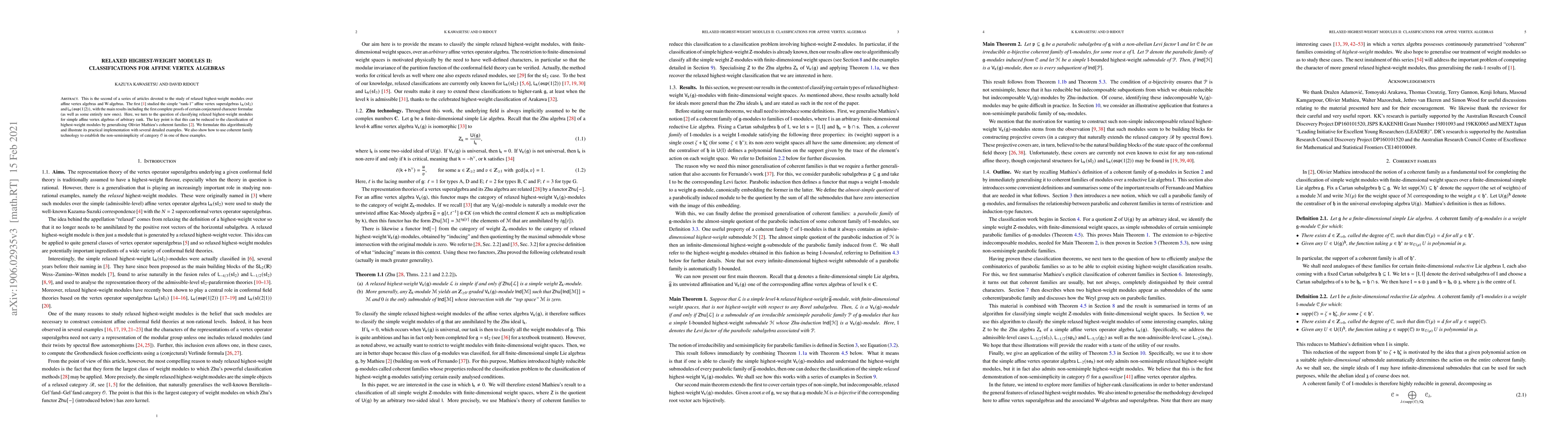 This is the second of a series of articles devoted to the study of relaxed highest-weight modules over affine vertex algebras and W-algebras. The first studied the simple "rank-$1$" affine vertex superalgebras $L_k(\mathfrak{sl}_2)$ and $L_k(\mathfrak{osp}(1\vert2))$, with the main results including the first complete proofs of certain conjectured character formulae (as well as some entirely new ones). Here, we turn to the question of classifying relaxed highest-weight modules for simple affine vertex algebras of arbitrary rank. The key point is that this can be reduced to the classification of highest-weight modules by generalising Olivier Mathieu's theory of coherent families. We formulate this algorithmically and illustrate its practical implementation with several detailed examples. We also show how to use coherent family technology to establish the non-semisimplicity of category $\mathscr{O}$ in one of these examples.