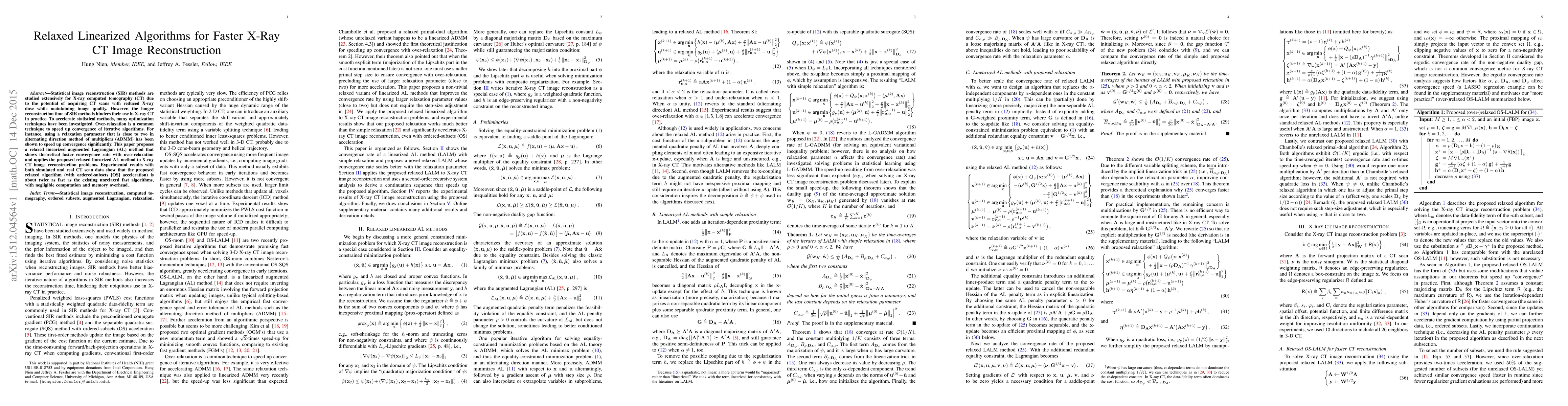 This paper proposes a relaxed linearized augmented Lagrangian method for faster X-ray CT image reconstruction, achieving faster convergence with over-relaxation techniques. Experimental results demonstrate that the new method is about twice as fast as existing algorithms with minimal additional computational cost.