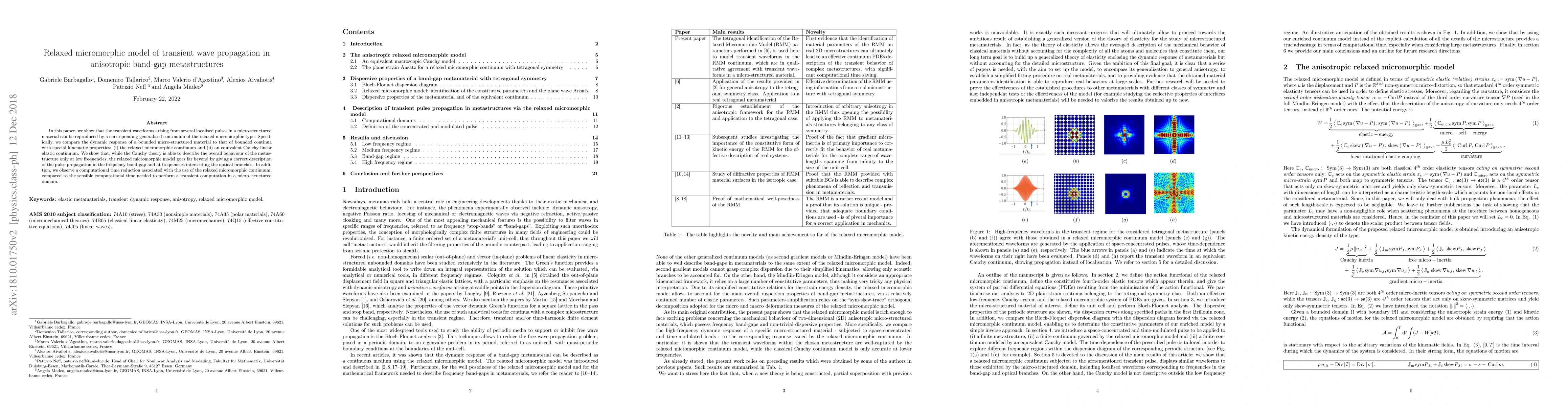 This paper demonstrates that transient waveforms in anisotropic band-gap metastructures can be accurately modeled using a relaxed micromorphic continuum, which outperforms the traditional Cauchy linear elastic continuum, especially at higher frequencies and within the frequency band-gap. The relaxed micromorphic model also offers computational efficiency benefits.
