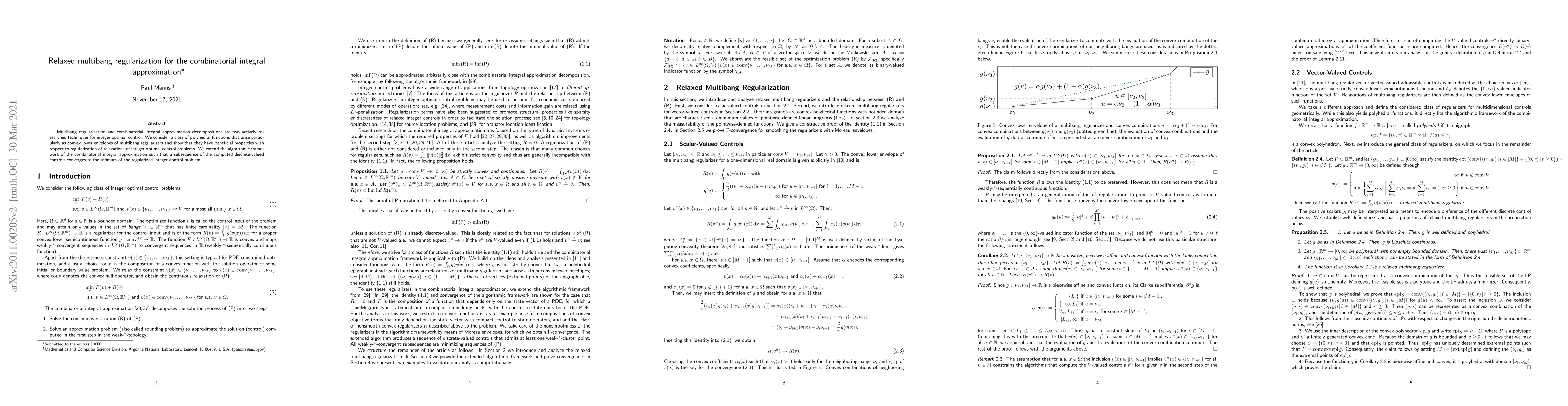 Multibang regularization and combinatorial integral approximation decompositions are two actively researched techniques for integer optimal control. We consider a class of polyhedral functions that arise particularly as convex lower envelopes of multibang regularizers and show that they have beneficial properties with respect to regularization of relaxations of integer optimal control problems. We extend the algorithmic framework of the combinatorial integral approximation such that a subsequence of the computed discrete-valued controls converges to the infimum of the regularized integer control problem.