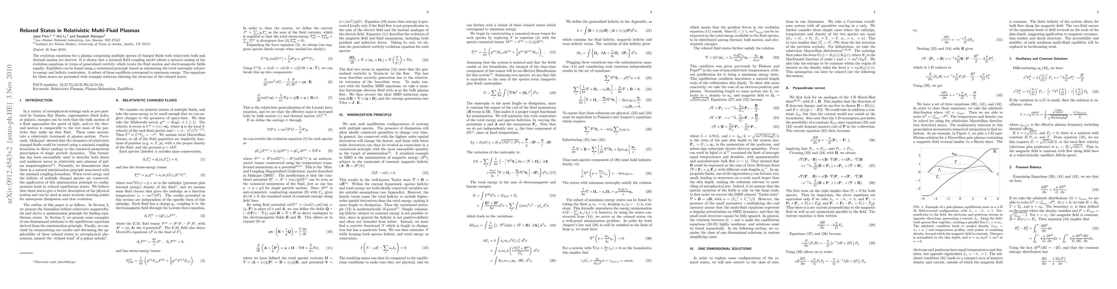 The evolution equations for a plasma comprising multiple species of charged fluids with relativistic bulk and thermal motion are derived. It is shown that a minimal fluid coupling model allows a natural casting of the evolution equations in terms of generalized vorticity which treats the fluid motion and electromagnetic fields equally. Equilibria can be found using a variational principle based on minimizing the total enstrophy subject to energy and helicity constraints. A subset of these equilibria correspond to minimum energy. The equations for these states are presented with example solutions showing the structure of the relaxed states.