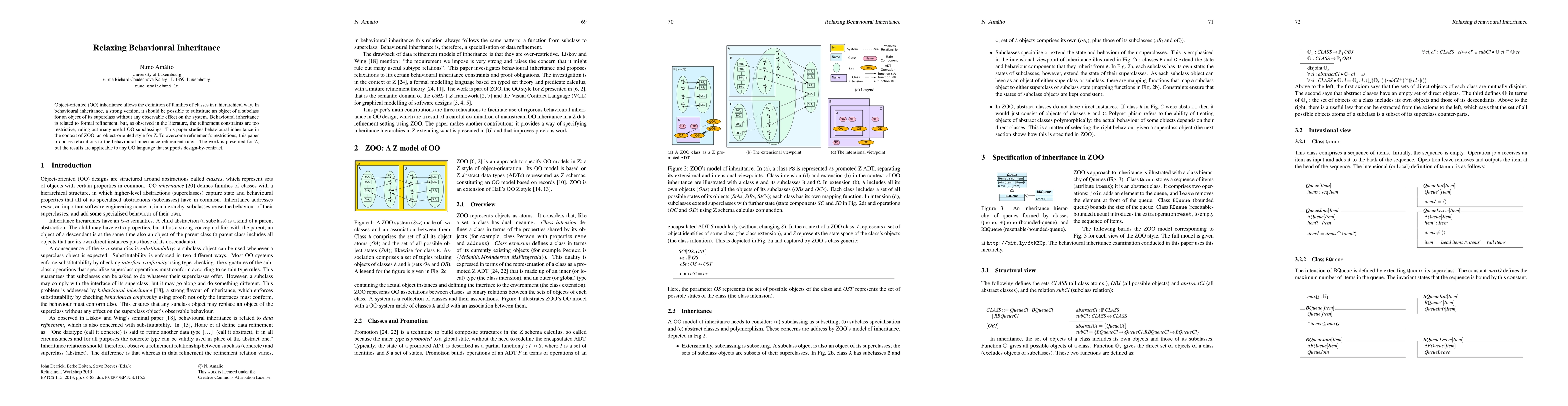 This paper explores behavioural inheritance in the context of ZOO, an object-oriented style for Z, proposing relaxations to traditional refinement constraints to allow more flexible subclassing. The results are applicable to any object-oriented language supporting design-by-contract.