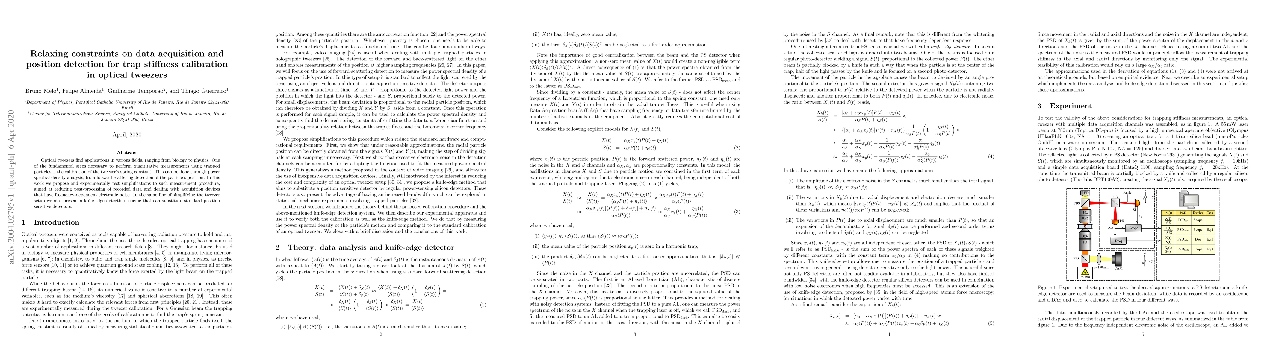 Researchers simplified data acquisition and position detection in optical tweezers to reduce post-processing and electronic noise errors, enabling more accurate spring constant calibration.