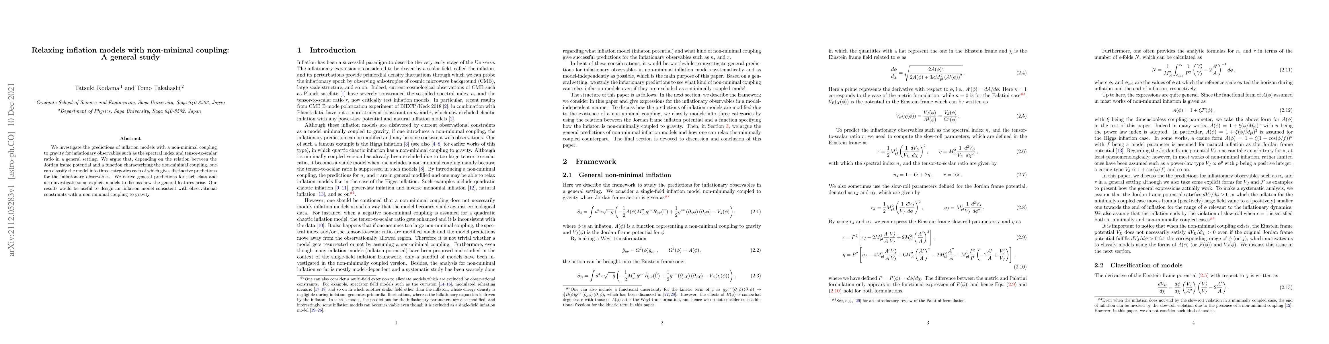 This paper explores inflation models with non-minimal gravitational coupling, classifying them into three categories based on the relationship between the Jordan frame potential and the non-minimal coupling function. It derives general predictions for each category and provides insights into designing inflation models consistent with observational data.