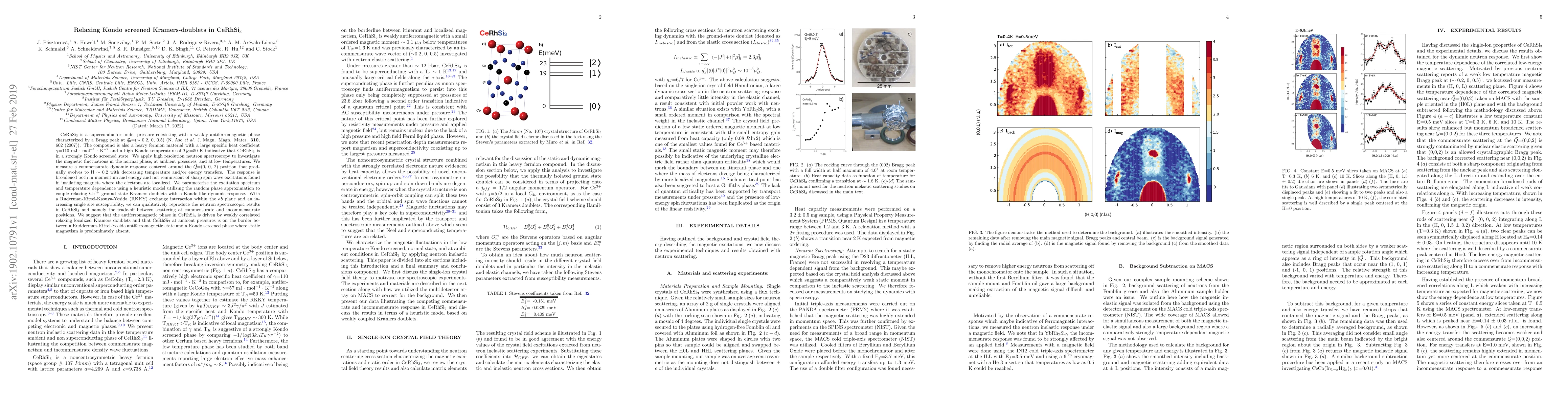 CeRhSi$_{3}$ exhibits magnetic fluctuations characterized by relaxing Kondo screened Kramers-doublets, as revealed by high-resolution neutron spectroscopy. The study suggests the material is on the border between a RKKY antiferromagnetic state and a Kondo screened phase, with no static magnetism at ambient pressure.