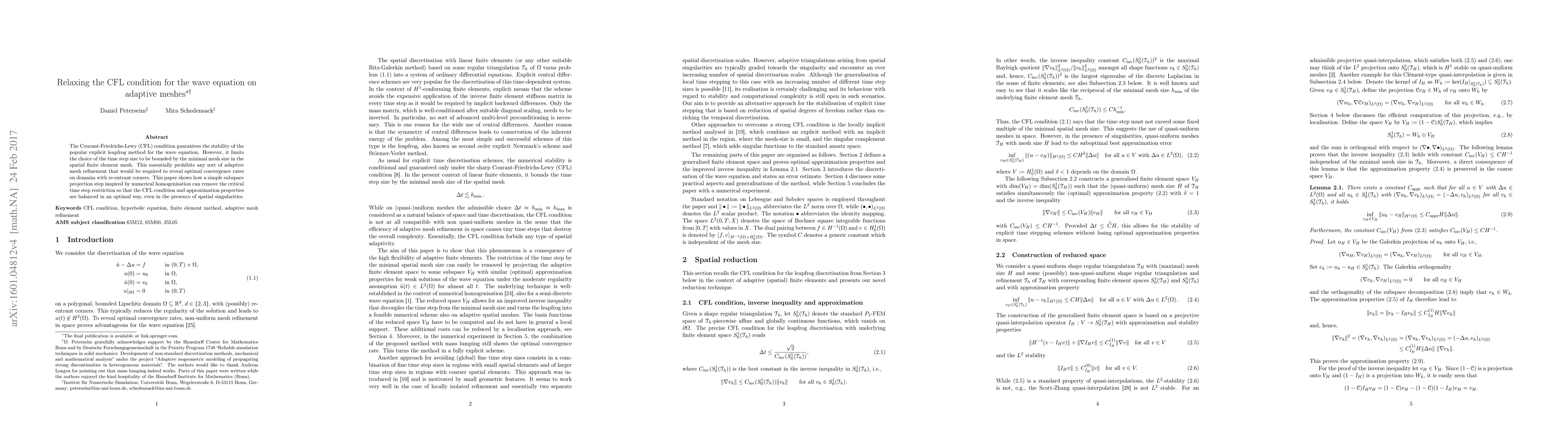 Researchers found a method to relax the CFL condition for wave equation simulations on adaptive meshes, allowing for optimal balance between stability and mesh refinement, enabling better convergence rates on complex domains.