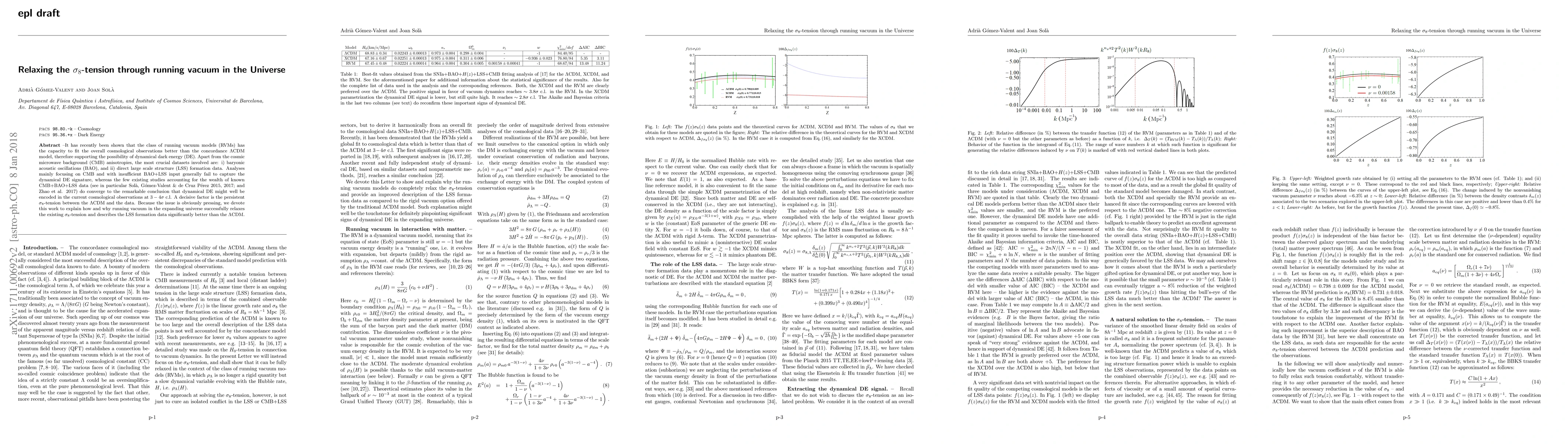 New research suggests that running vacuum models can explain the current cosmological observations better than the standard Lambda-CDM model, potentially supporting dynamical dark energy. These models successfully relax the existing $eta$-tension between theory and data, providing a promising alternative explanation for the universe's evolution.