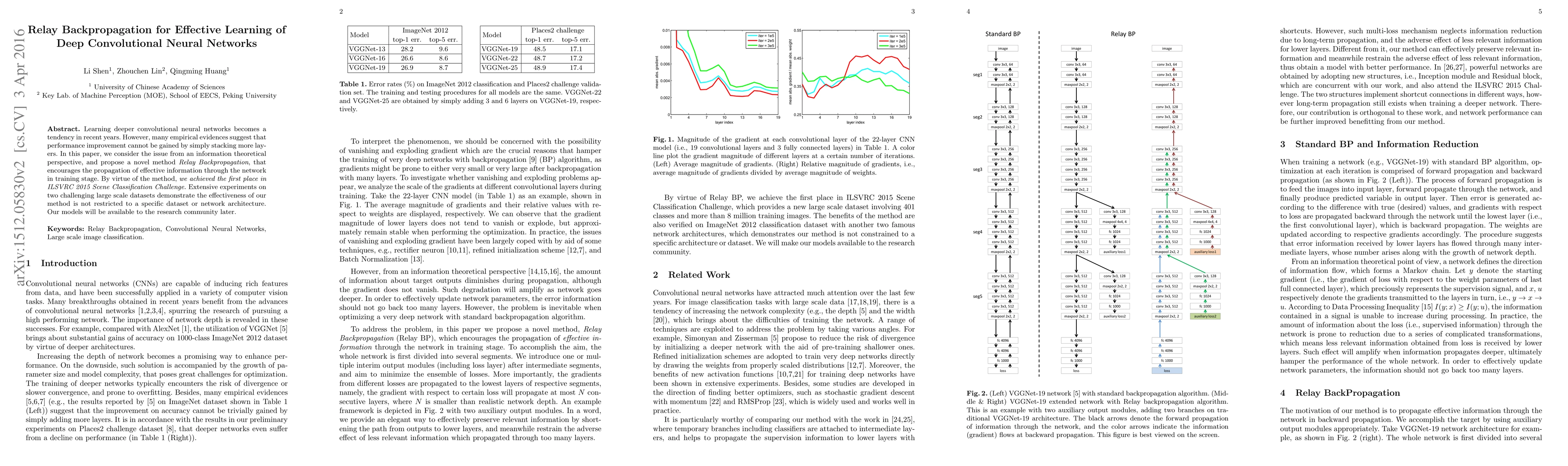 This paper introduces Relay Backpropagation, a novel method that enhances the propagation of effective information in deep convolutional neural networks, leading to improved performance without merely adding more layers. The method achieved top results in the ILSVRC 2015 Scene Classification Challenge and shows consistent effectiveness across various large-scale datasets.