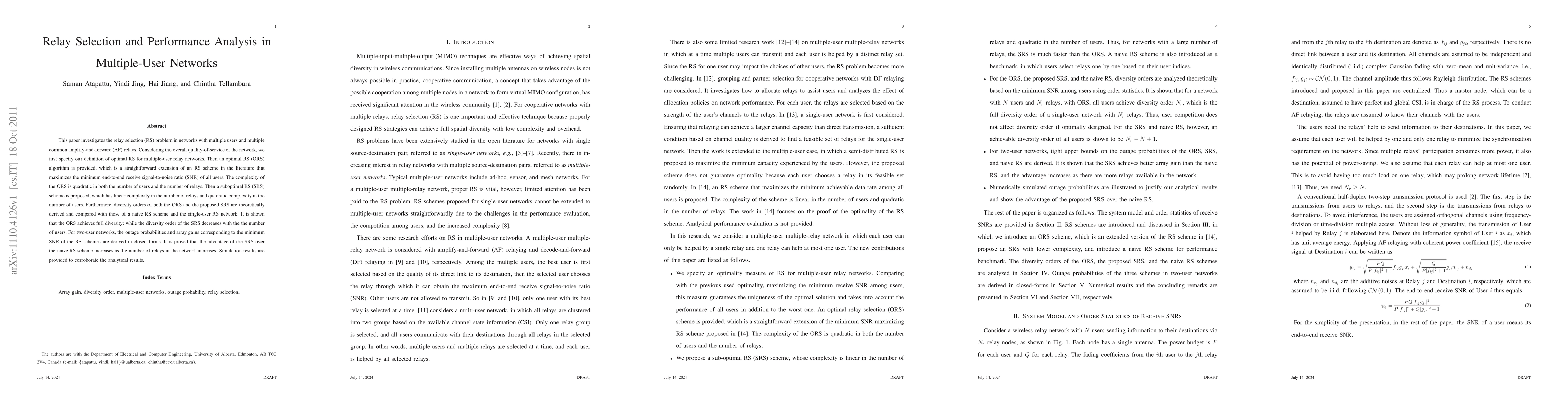 This paper investigates the relay selection (RS) problem in networks with multiple users and multiple common amplify-and-forward (AF) relays. Considering the overall quality-of-service of the network, we first specify our definition of optimal RS for multiple-user relay networks. Then an optimal RS (ORS) algorithm is provided, which is a straightforward extension of an RS scheme in the literature that maximizes the minimum end-to-end receive signal-to-noise ratio (SNR) of all users. The complexity of the ORS is quadratic in both the number of users and the number of relays. Then a suboptimal RS (SRS) scheme is proposed, which has linear complexity in the number of relays and quadratic complexity in the number of users. Furthermore, diversity orders of both the ORS and the proposed SRS are theoretically derived and compared with those of a naive RS scheme and the single-user RS network. It is shown that the ORS achieves full diversity; while the diversity order of the SRS decreases with the the number of users. For two-user networks, the outage probabilities and array gains corresponding to the minimum SNR of the RS schemes are derived in closed forms. It is proved that the advantage of the SRS over the naive RS scheme increases as the number of relays in the network increases. Simulation results are provided to corroborate the analytical results.