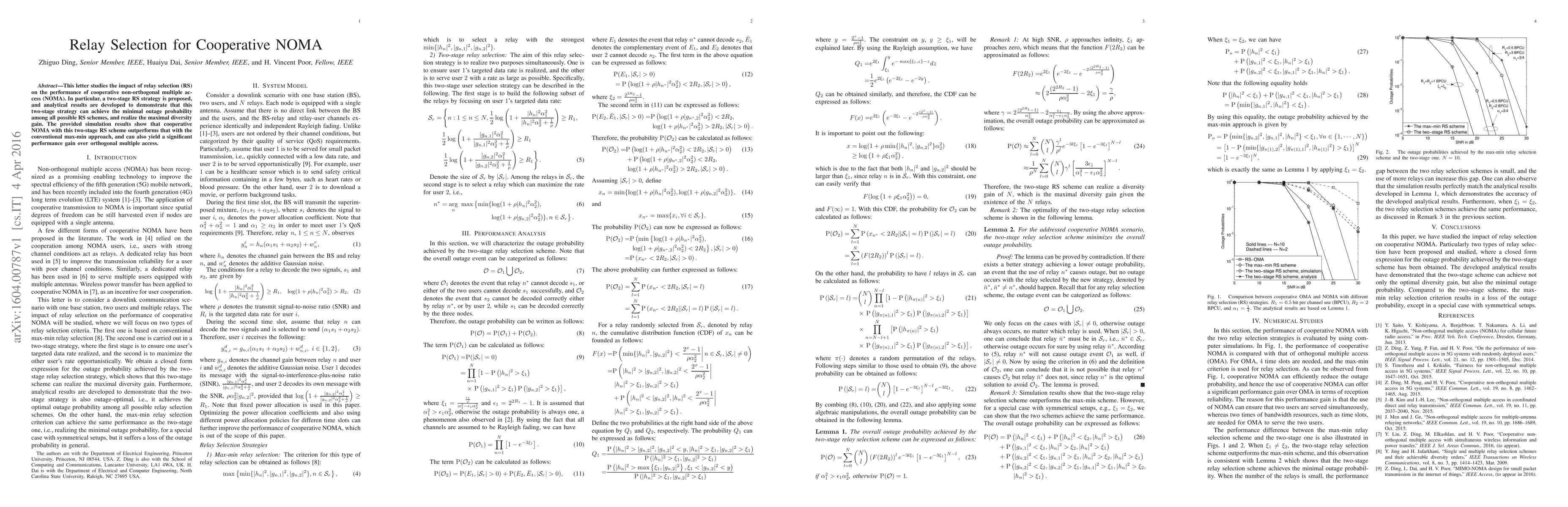 This paper proposes a two-stage relay selection strategy for cooperative non-orthogonal multiple access (NOMA) to minimize outage probability and maximize diversity gain. Simulation results show superior performance compared to conventional max-min approaches and orthogonal multiple access.