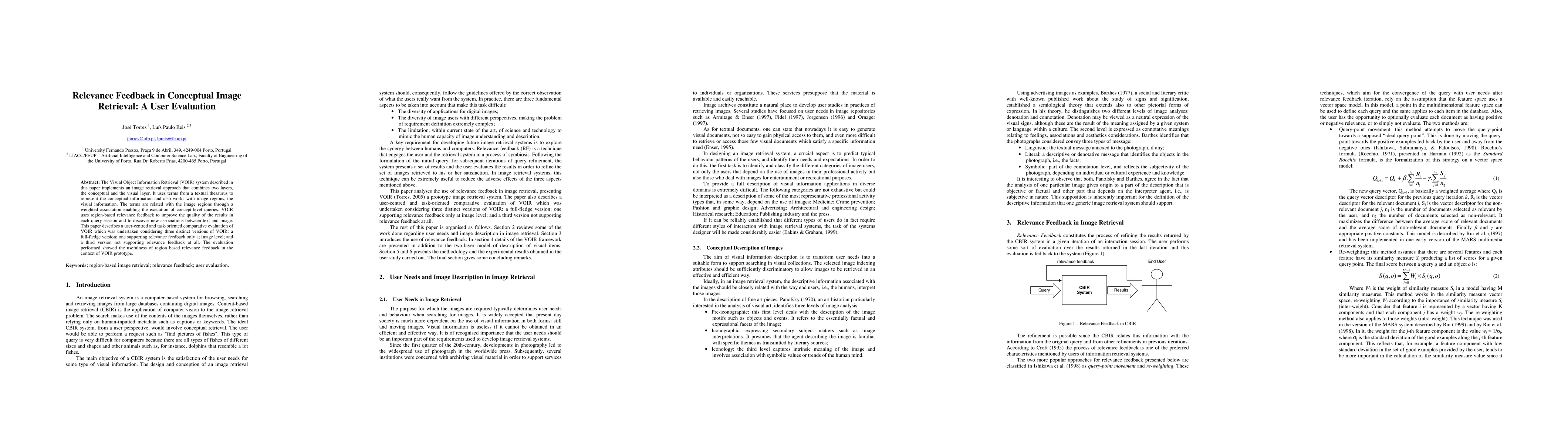 This paper evaluates the Visual Object Information Retrieval (VOIR) system, which uses conceptual and visual layers for image retrieval, and assesses the impact of region-based relevance feedback through a user-centred comparison of three VOIR versions. The results demonstrate the effectiveness of relevance feedback in enhancing retrieval quality.