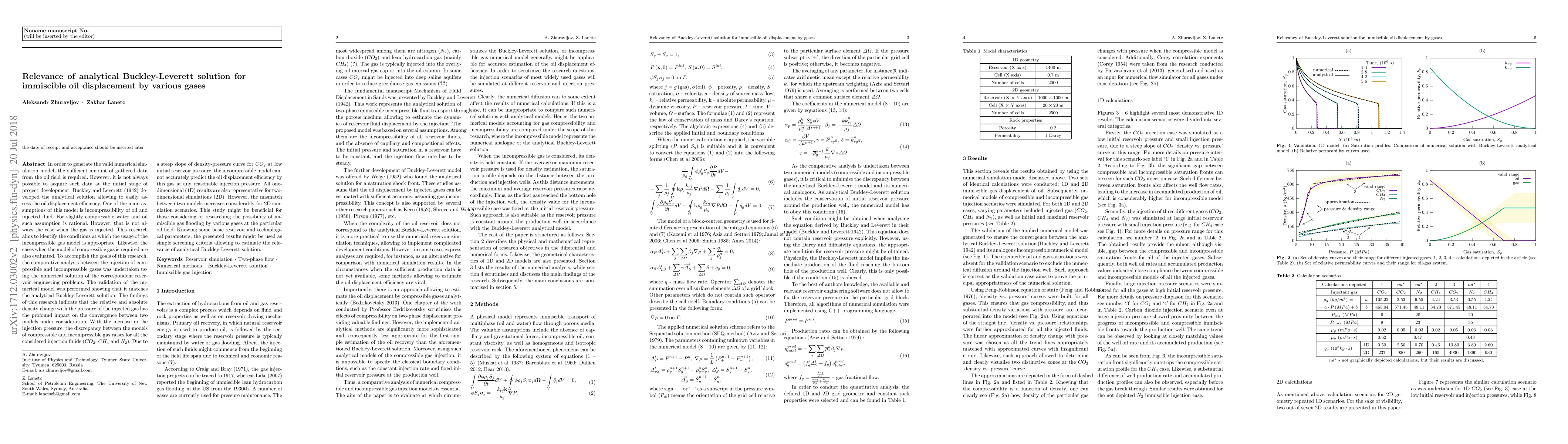 In order to generate the valid numerical simulation model, the sufficient amount of gathered data from the oil field is required. However, it is not always possible to acquire such data at the initial stage of project development. Buckley and Leverett (1942) developed the analytical solution allowing to assess the oil displacement efficiency. One of the main assumptions of this model is incompressibility of oil and injected fluid. For slightly compressible water and oil such assumption is rational. However, that is not always the case when the gas is injected. This research aims to identify the conditions at which the usage of the incompressible gas model is appropriate. Likewise, the cases when the model of compressible gas is required are also evaluated. To accomplish the goals of this research, the comparative analysis between the injection of compressible and incompressible gases was undertaken using the numerical solution of the correspondent reservoir engineering problem. The validation of the numerical model was undertaken showing that it matches the analytical Buckley-Leverett solution. The findings of this research indicate that the relative and absolute density change with the pressure of the injected gas has the profound impact on the convergence between two models under consideration. With the increase in the injection pressure, the discrepancy between the models of compressible and incompressible gas raises for all the considered injection fluids (CO2, CH4 and N2). Due to a steep slope of 'density-pressure' curve for CO2 at low initial reservoir pressure, the incompressible model cannot accurately predict the oil displacement efficiency by this gas at any reasonable injection pressure. All 1D results are also representative for 2D simulation. However, the mismatch between two models increases considerably for 2D simulation scenarios.