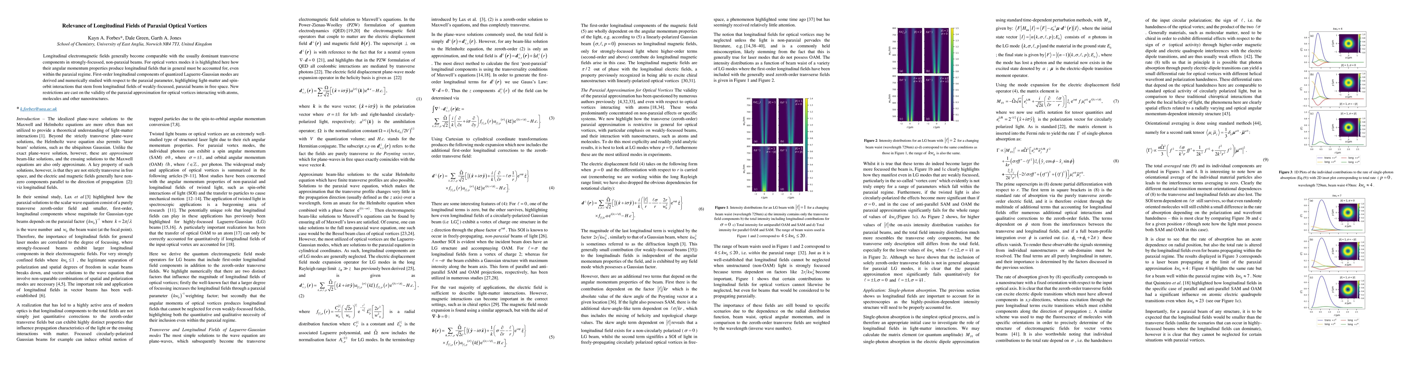 The paper presents a detailed derivation and numerical study of first-order longitudinal components of Laguerre-Gaussian modes, highlighting their importance in light-matter interactions and challenging the traditional neglect of longitudinal fields in paraxial optical vortices.