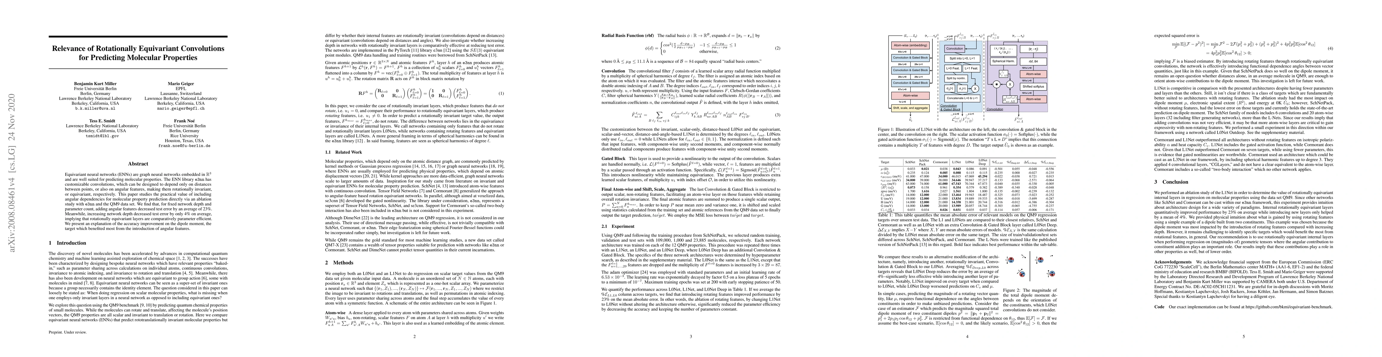 This paper investigates the effectiveness of rotationally equivariant convolutions in equivariant neural networks for predicting molecular properties, finding that incorporating angular features reduces test error by 23% on average. The study highlights that these equivariant layers are more parameter efficient compared to simply increasing network depth.