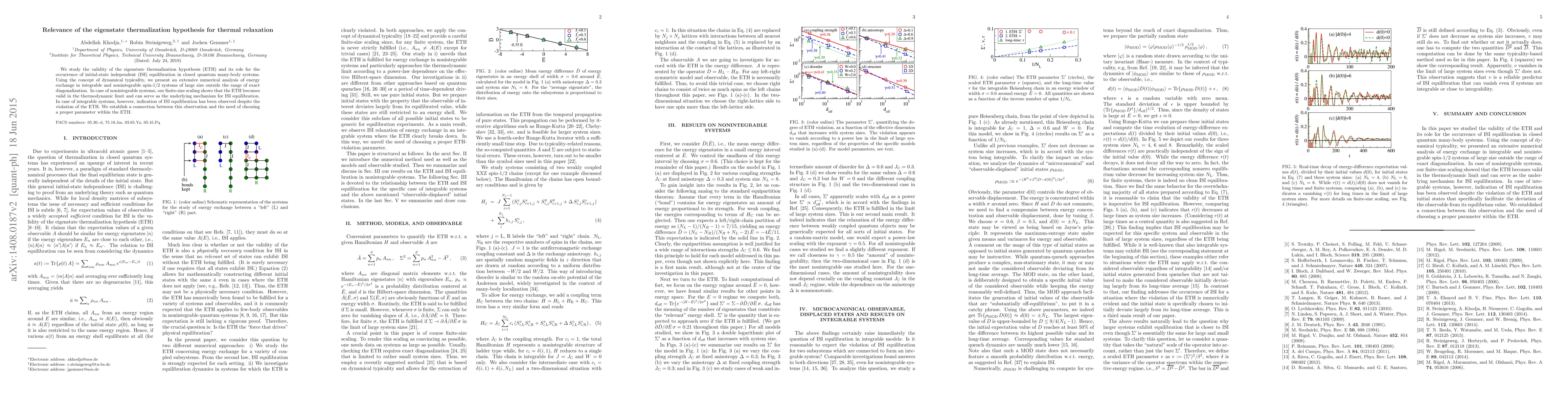 We study the validity of the eigenstate thermalization hypothesis (ETH) and its role for the occurrence of initial-state independent (ISI) equilibration in closed quantum many-body systems. Using the concept of dynamical typicality, we present an extensive numerical analysis of energy exchange in integrable and nonintegrable spin-1/2 systems of large size outside the range of exact diagonalization. In case of nonintegrable systems, our finite-size scaling shows that the ETH becomes valid in the thermodynamic limit and can serve as the underlying mechanism for ISI equilibration. In case of integrable systems, however, indication of ISI equilibration has been observed despite the violation of the ETH. We establish a connection between this observation and the need of choosing a proper parameter within the ETH.