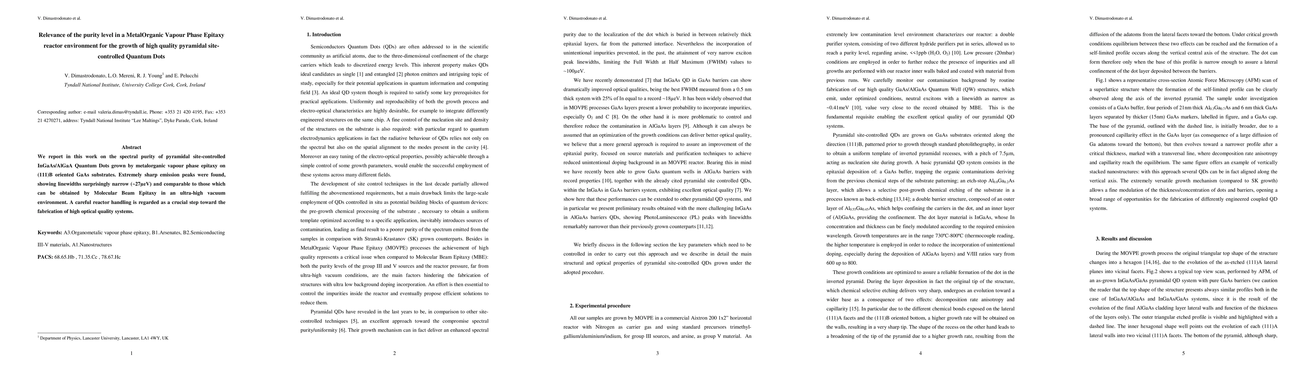 This study investigates the impact of reactor purity during MetalOrganic Vapour Phase Epitaxy on the growth of high-quality InGaAs/AlGaAs pyramidal site-controlled Quantum Dots, achieving remarkably sharp emission peaks (~27μeV) akin to those produced by Molecular Beam Epitaxy. Proper reactor handling is essential for fabricating optical systems with superior quality.