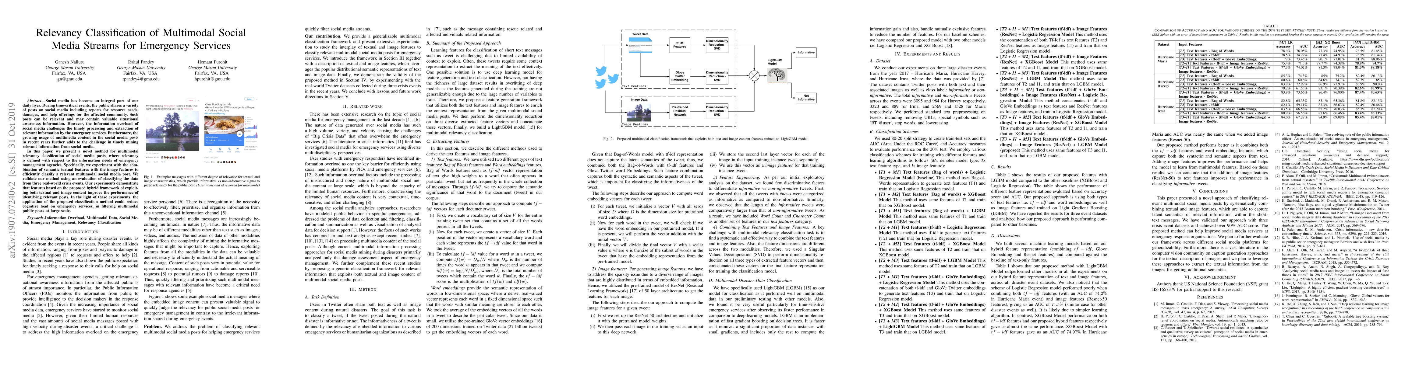 This paper proposes a novel method for classifying multimodal social media posts relevant to emergency services, combining semantic textual and image features to efficiently identify valuable situational information amidst information overload. Experiments on real-world crisis data show improved performance, suggesting the method could reduce the cognitive load on emergency services by filtering large-scale public posts.