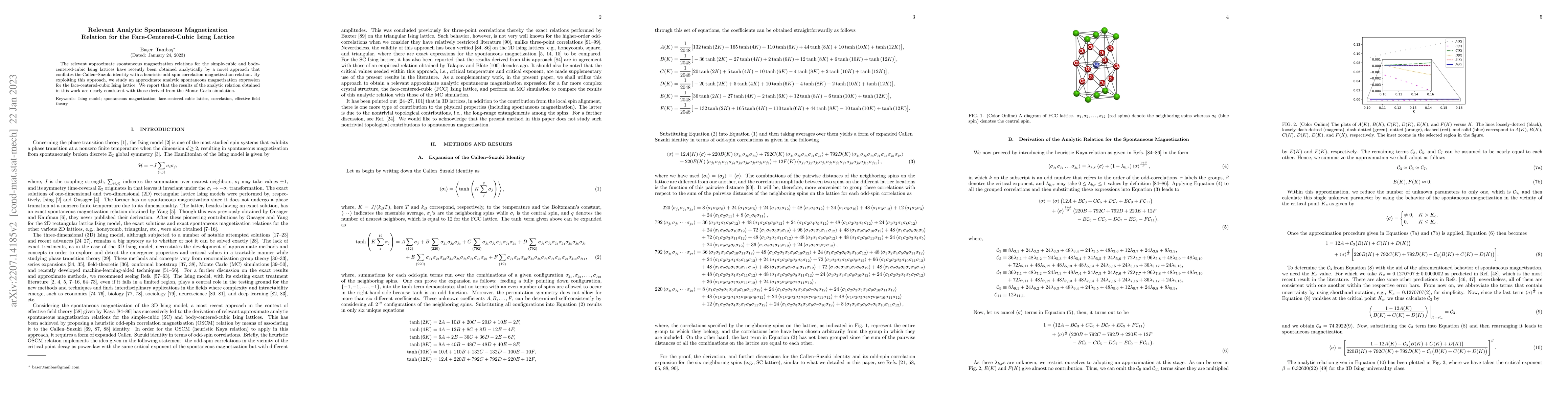 This paper develops an approximate analytic expression for the spontaneous magnetization of the face-centered-cubic Ising lattice using a novel approach combining the Callen-Suzuki identity with an odd-spin correlation relation. The results show near consistency with Monte Carlo simulation data.