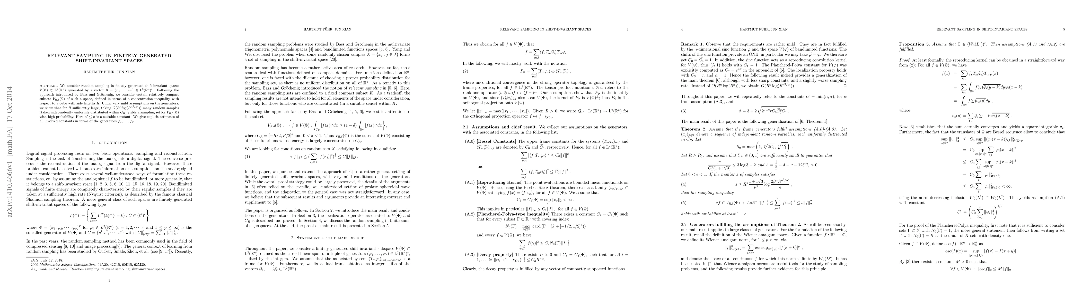 This paper explores random sampling techniques in finitely generated shift-invariant spaces, demonstrating that a sufficient number of uniformly distributed random samples can reliably reconstruct functions within a defined subset of the space, provided the sample size scales appropriately with the space's dimensions. Explicit estimates for the required sampling size are given based on the generators of the space.