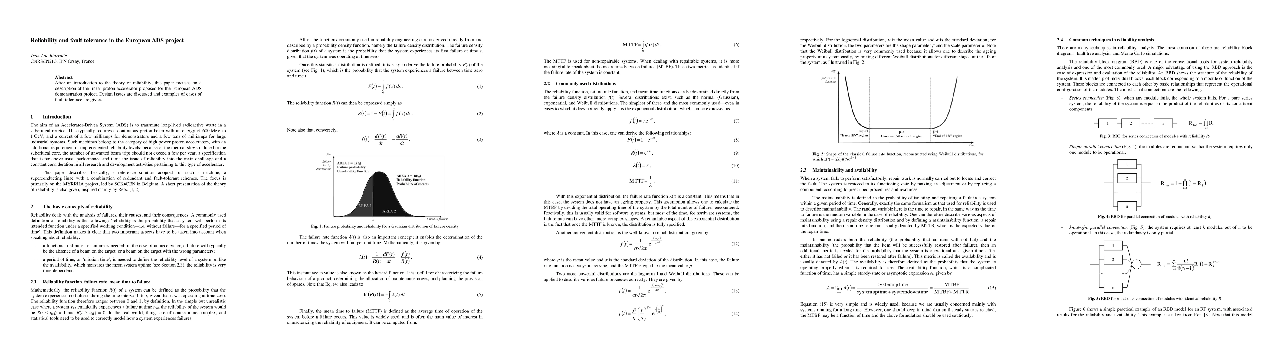 After an introduction to the theory of reliability, this paper focuses on a description of the linear proton accelerator proposed for the European ADS demonstration project. Design issues are discussed and examples of cases of fault tolerance are given.
