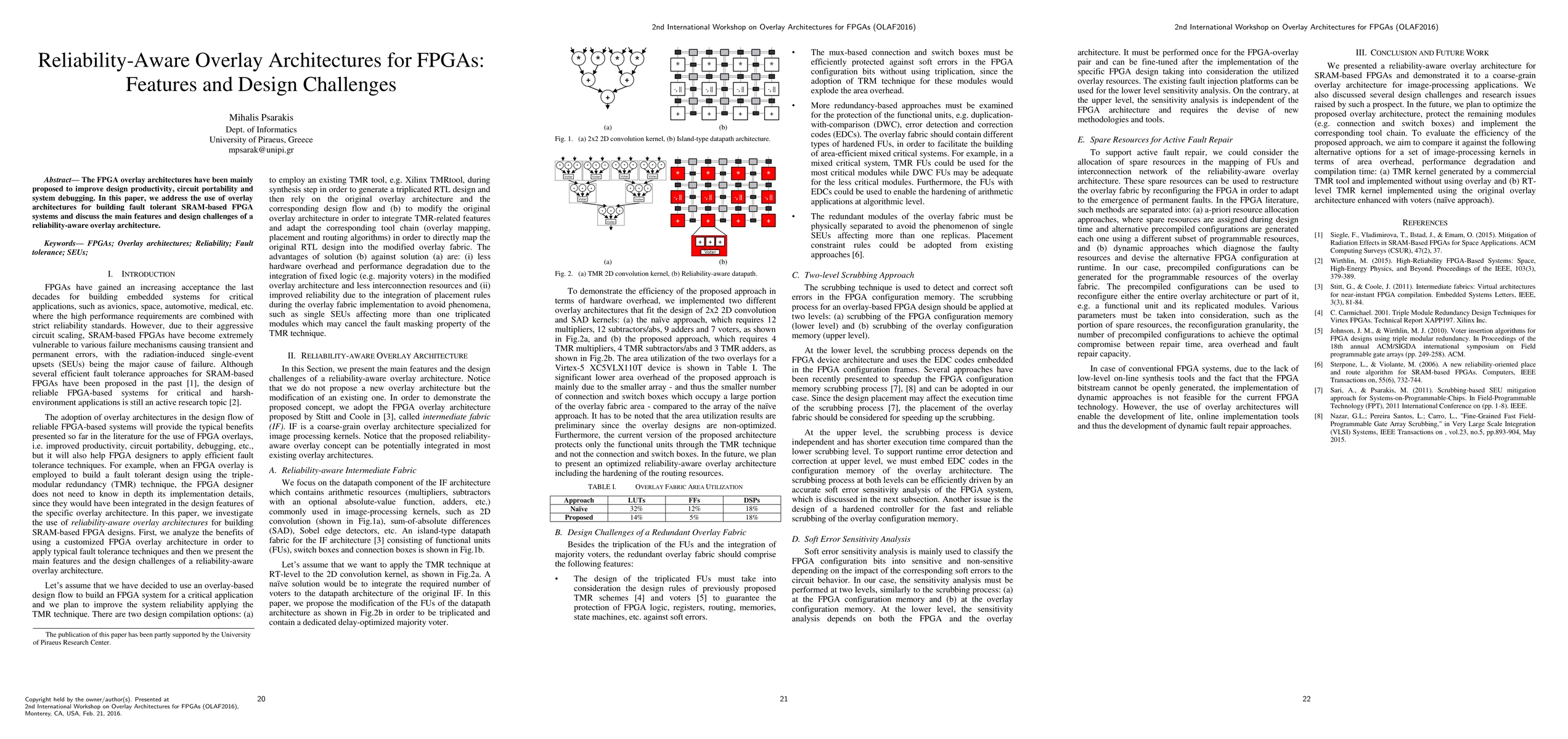This paper explores overlay architectures for FPGAs aimed at enhancing fault tolerance in SRAM-based systems, discussing key features and the design challenges inherent in creating reliability-aware overlay architectures.