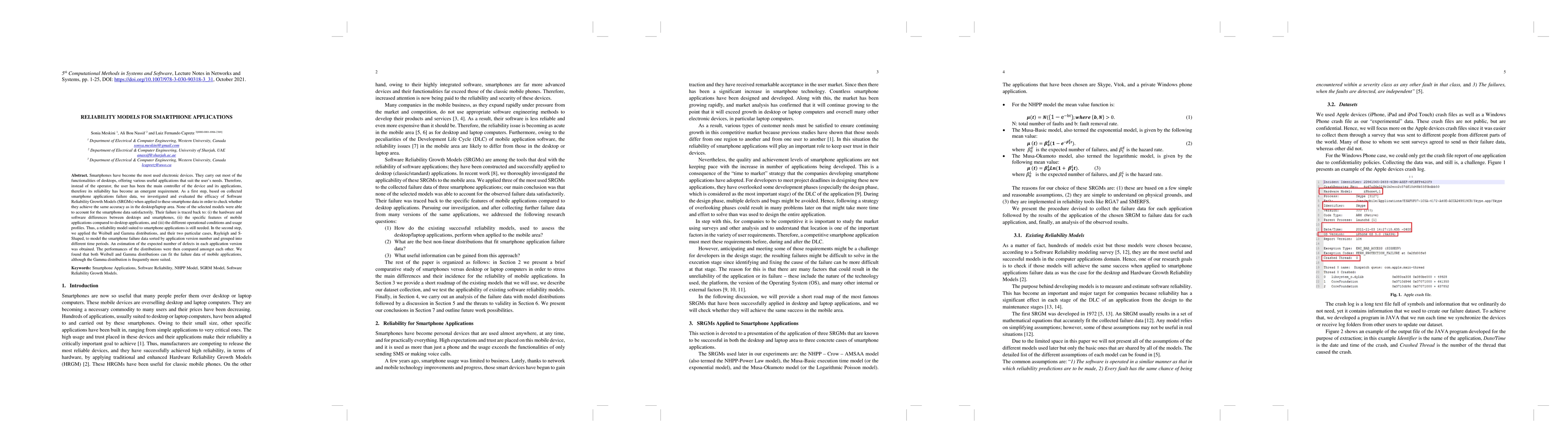 This research investigates the applicability of Software Reliability Growth Models (SRGMs) to smartphone applications, finding that none are satisfactory due to hardware/software differences and unique mobile application features. The study then applies Weibull and Gamma distributions to smartphone failure data, concluding that while both can fit the data, the Gamma distribution often performs better.