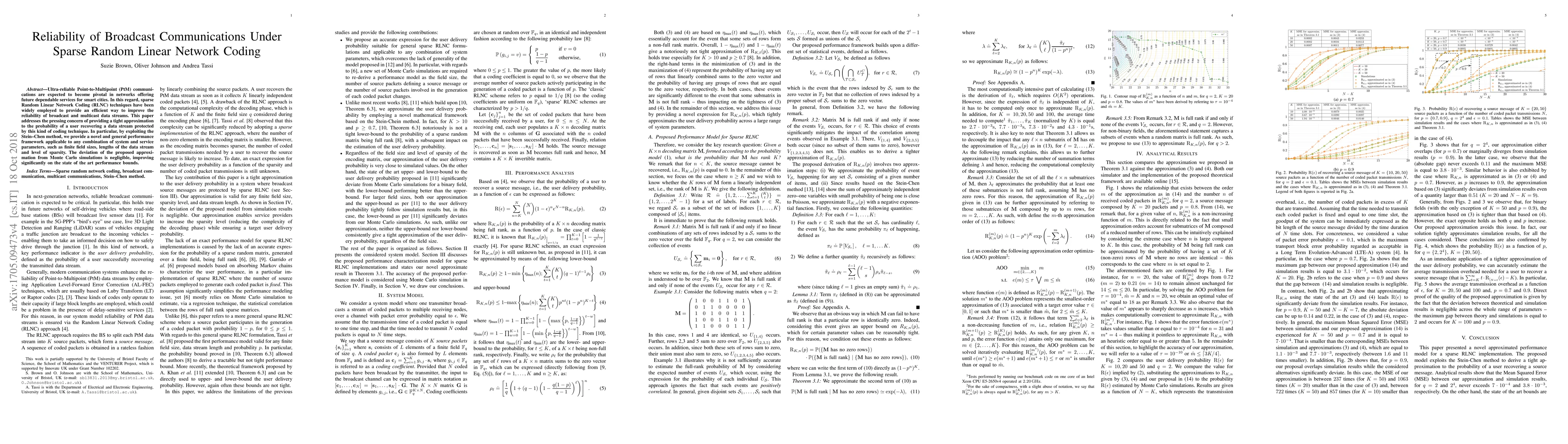 Ultra-reliable Point-to-Multipoint (PtM) communications are expected to become pivotal in networks offering future dependable services for smart cities. In this regard, sparse Random Linear Network Coding (RLNC) techniques have been widely employed to provide an efficient way to improve the reliability of broadcast and multicast data streams. This paper addresses the pressing concern of providing a tight approximation to the probability of a user recovering a data stream protected by this kind of coding technique. In particular, by exploiting the Stein--Chen method, we provide a novel and general performance framework applicable to any combination of system and service parameters, such as finite field sizes, lengths of the data stream and level of sparsity. The deviation of the proposed approximation from Monte Carlo simulations is negligible, improving significantly on the state of the art performance bounds.
