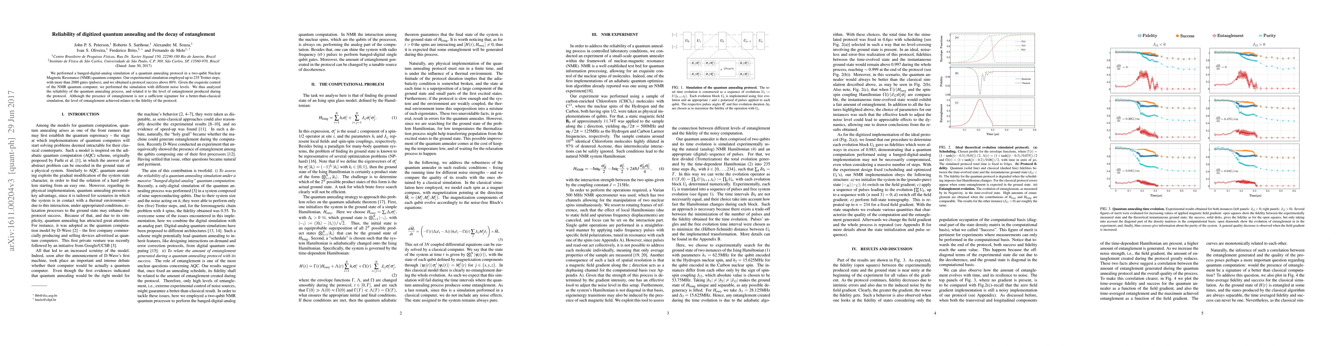 This paper investigates the reliability of a quantum annealing protocol simulated on a two-qubit NMR quantum computer, achieving over 80% success with high control precision. The study also examines how varying noise levels affect entanglement decay and relates entanglement levels to the fidelity of the quantum annealing process.