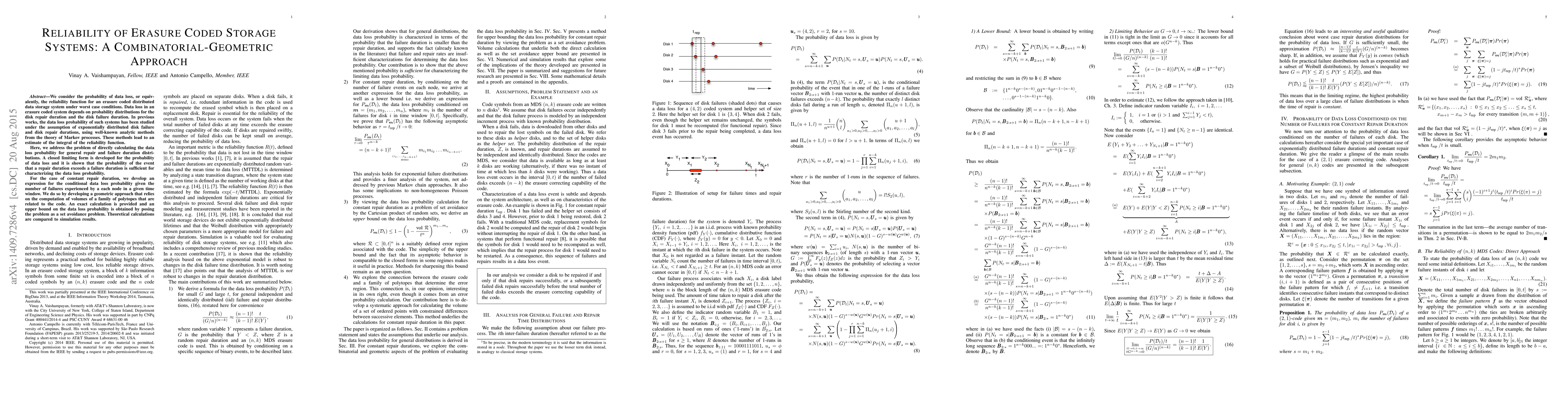 This paper develops a geometric approach to calculate the data loss probability in erasure coded storage systems under general repair and failure duration distributions. It provides a closed limiting form for data loss probability and an exact calculation for the conditional probability given the number of failures, using volumes of related polytopes.