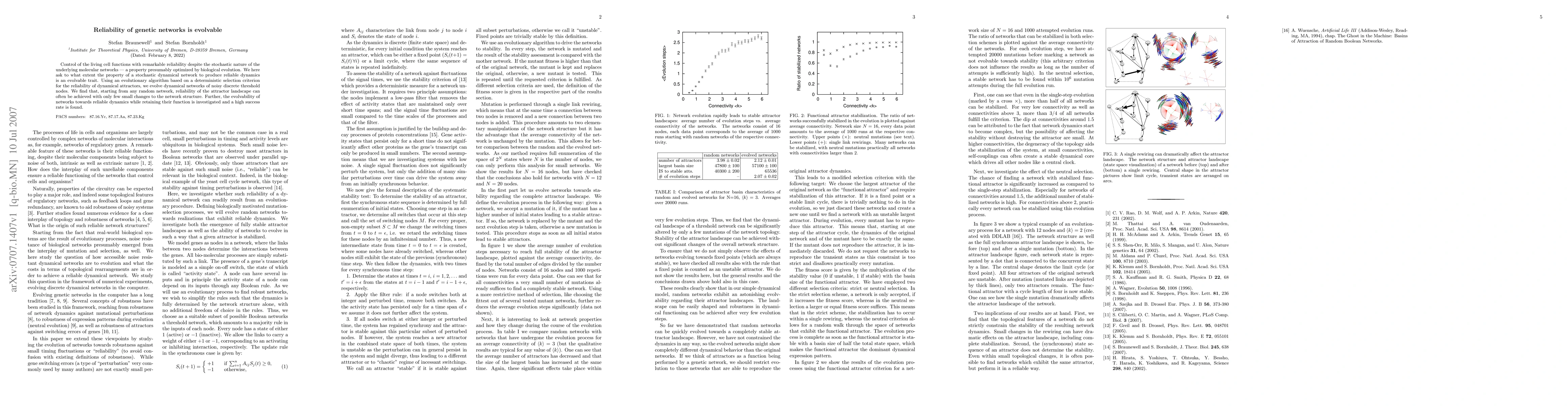 This paper explores the evolvability of genetic networks' reliability despite stochastic molecular interactions. The study finds that small structural changes can significantly enhance the reliability of dynamical networks, indicating high success in evolving networks to maintain their function while achieving reliable dynamics.