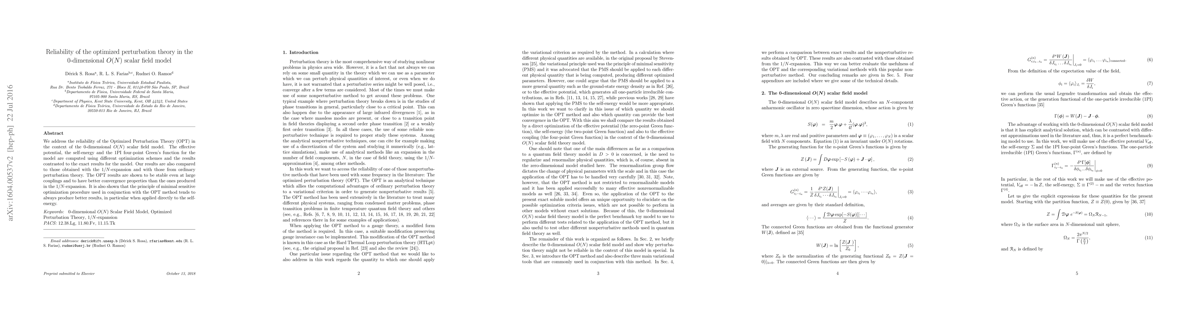 We address the reliability of the Optimized Perturbation Theory (OPT) in the context of the 0-dimensional $O(N)$ scalar field model. The effective potential, the self-energy and the 1PI four-point Green's function for the model are computed using different optimization schemes and the results contrasted to the exact results for the model. Our results are also compared to those obtained with the $1/N$-expansion and with those from ordinary perturbation theory. The OPT results are shown to be stable even at large couplings and to have better convergence properties than the ones produced in the $1/N$-expansion. It is also shown that the principle of minimal sensitive optimization procedure used in conjunction with the OPT method tends to always produce better results, in particular when applied directly to the self-energy.