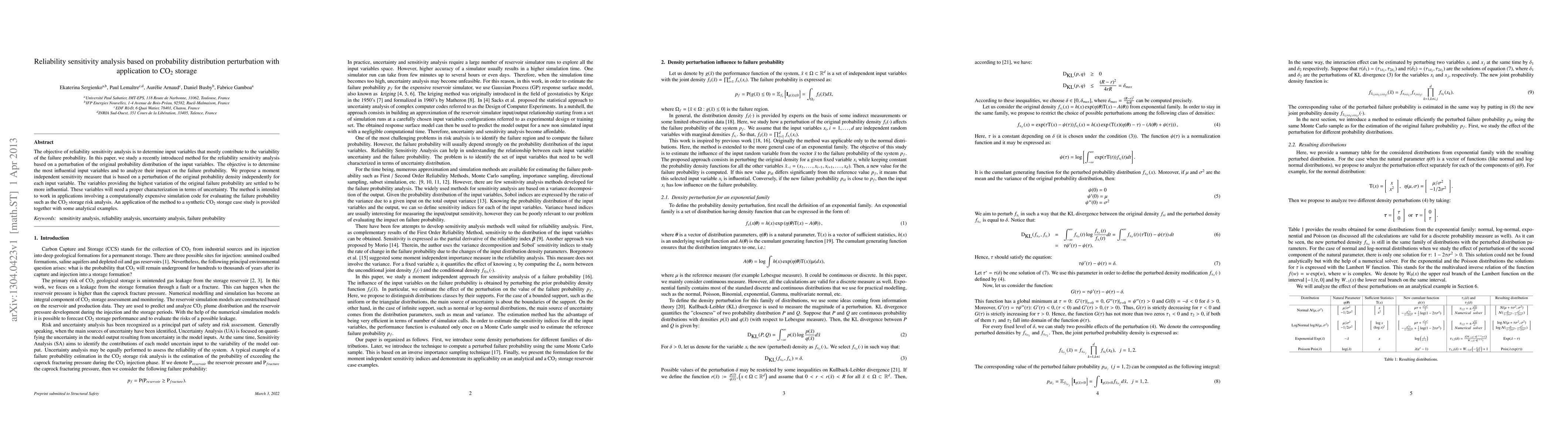This paper proposes a moment independent sensitivity analysis method based on perturbation of input probability distributions to identify the most influential variables affecting failure probability. It applies this method to CO2 storage risk analysis, demonstrating its effectiveness in computationally expensive simulations.