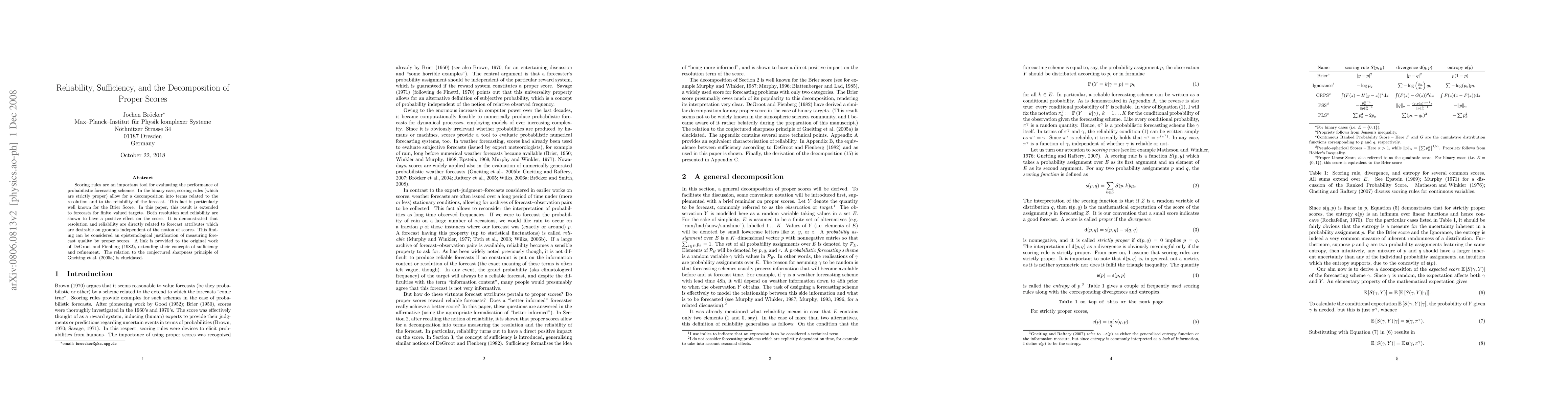 Scoring rules are an important tool for evaluating the performance of probabilistic forecasting schemes. In the binary case, scoring rules (which are strictly proper) allow for a decomposition into terms related to the resolution and to the reliability of the forecast. This fact is particularly well known for the Brier Score. In this paper, this result is extended to forecasts for finite--valued targets. Both resolution and reliability are shown to have a positive effect on the score. It is demonstrated that resolution and reliability are directly related to forecast attributes which are desirable on grounds independent of the notion of scores. This finding can be considered an epistemological justification of measuring forecast quality by proper scores. A link is provided to the original work of DeGroot et al (1982), extending their concepts of sufficiency and refinement. The relation to the conjectured sharpness principle of Gneiting et al (2005a) is elucidated.