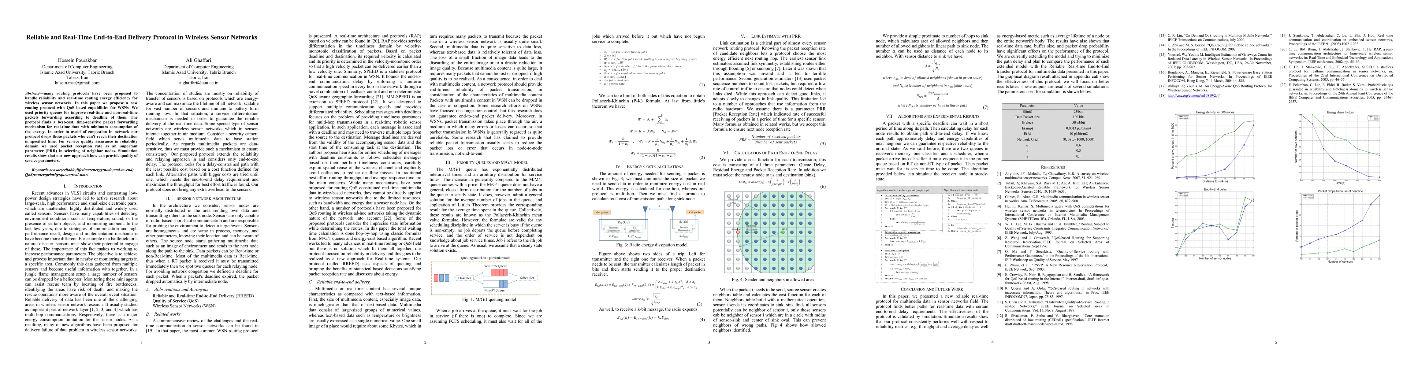 This paper proposes a new QoS-based routing protocol for wireless sensor networks that prioritizes real-time packet forwarding using priority queues and optimizes energy efficiency. The protocol ensures reliable delivery by dropping packets that cannot reach their destination on time and selects neighbor nodes based on packet reception rate for service quality assurance.