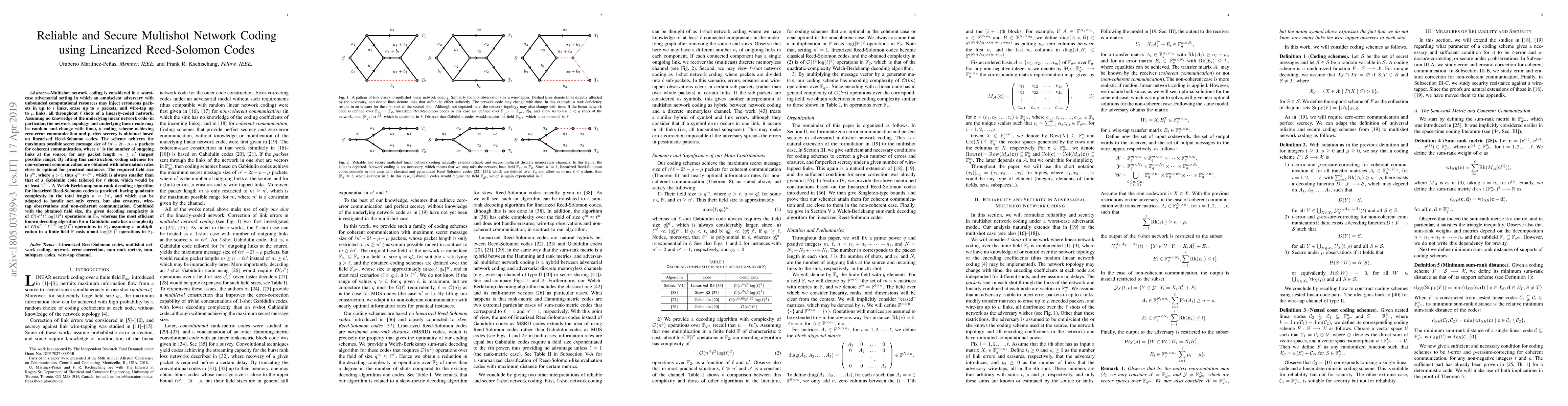 Multishot network coding is considered in a worst-case adversarial setting in which an omniscient adversary with unbounded computational resources may inject erroneous packets in up to $t$ links, erase up to $\rho$ packets, and wire-tap up to $\mu$ links, all throughout $\ell$ shots of a linearly-coded network. Assuming no knowledge of the underlying linear network code (in particular, the network topology and underlying linear code may be random and change with time), a coding scheme achieving zero-error communication and perfect secrecy is obtained based on linearized Reed-Solomon codes. The scheme achieves the maximum possible secret message size of $ \ell n^\prime - 2t - \rho - \mu $ packets for coherent communication, where $ n^\prime $ is the number of outgoing links at the source, for any packet length $ m \geq n^\prime $ (largest possible range). By lifting this construction, coding schemes for non-coherent communication are obtained with information rates close to optimal for practical instances. The required field size is $ q^m $, where $ q > \ell $, thus $ q^m \approx \ell^{n^\prime} $, which is always smaller than that of a Gabidulin code tailored for $ \ell $ shots, which would be at least $ 2^{\ell n^\prime} $. A Welch-Berlekamp sum-rank decoding algorithm for linearized Reed-Solomon codes is provided, having quadratic complexity in the total length $n = \ell n^\prime $, and which can be adapted to handle not only errors, but also erasures, wire-tap observations and non-coherent communication. Combined with the obtained field size, the given decoding complexity is of $ \mathcal{O}(n^{\prime 4} \ell^2 \log(\ell)^2) $ operations in $ \mathbb{F}_2 $.
