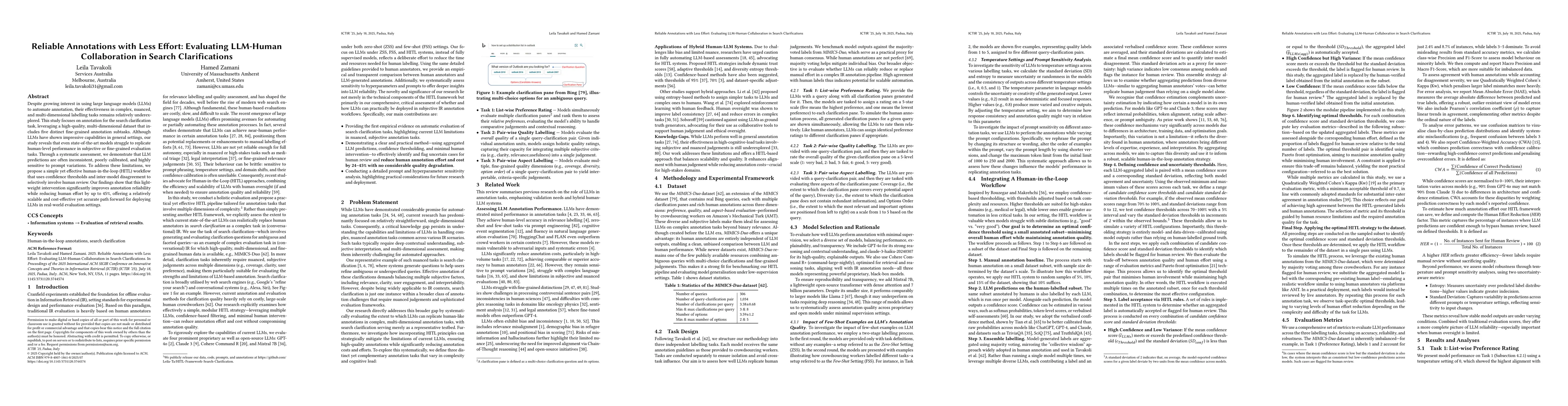 Despite growing interest in using large language models (LLMs) to automate annotation, their effectiveness in complex, nuanced, and multi-dimensional labelling tasks remains relatively underexplored. This study focuses on annotation for the search clarification task, leveraging a high-quality, multi-dimensional dataset that includes five distinct fine-grained annotation subtasks. Although LLMs have shown impressive capabilities in general settings, our study reveals that even state-of-the-art models struggle to replicate human-level performance in subjective or fine-grained evaluation tasks. Through a systematic assessment, we demonstrate that LLM predictions are often inconsistent, poorly calibrated, and highly sensitive to prompt variations. To address these limitations, we propose a simple yet effective human-in-the-loop (HITL) workflow that uses confidence thresholds and inter-model disagreement to selectively involve human review. Our findings show that this lightweight intervention significantly improves annotation reliability while reducing human effort by up to 45%, offering a relatively scalable and cost-effective yet accurate path forward for deploying LLMs in real-world evaluation settings.