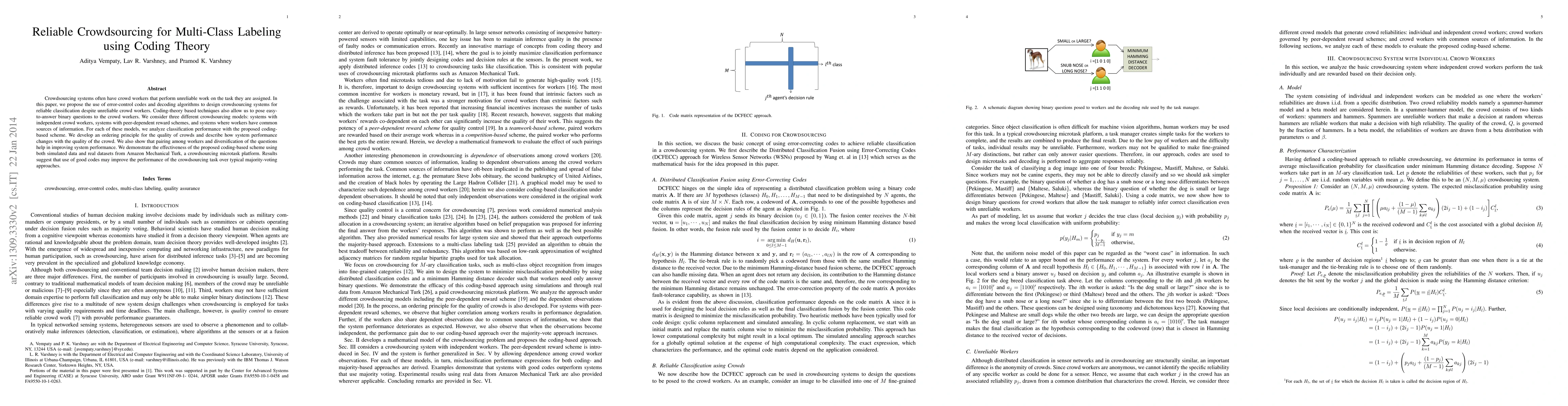 This paper proposes coding theory-based techniques to enhance the reliability of crowdsourcing systems for multi-class labeling, addressing the issue of unreliable crowd workers. The study evaluates different crowdsourcing models and demonstrates improved performance over traditional majority-voting methods using both simulated and real data from Amazon Mechanical Turk.