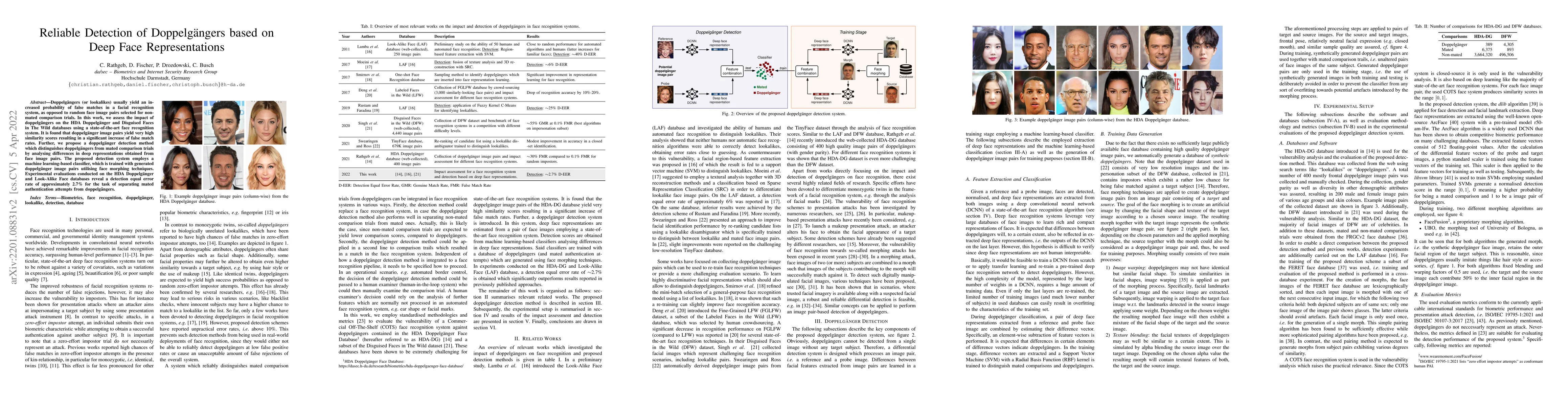 Researchers developed a method to detect doppelgangers in facial recognition systems, revealing they yield high similarity scores leading to false match rates. Their proposed detection system achieved an error rate of approximately 2.7% in separating authentication attempts from doppelgangers.