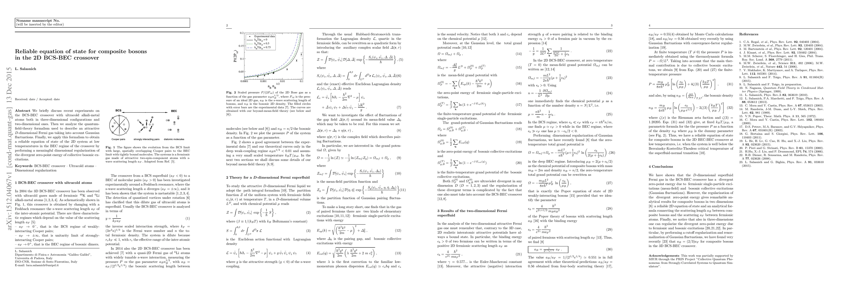 Researchers developed a reliable equation of state for composite bosons in 2D BCS-BEC crossover, enabling accurate predictions at low temperatures. They applied Gaussian fluctuations to the quantum-field-theory formalism to account for divergent zero-point energy.